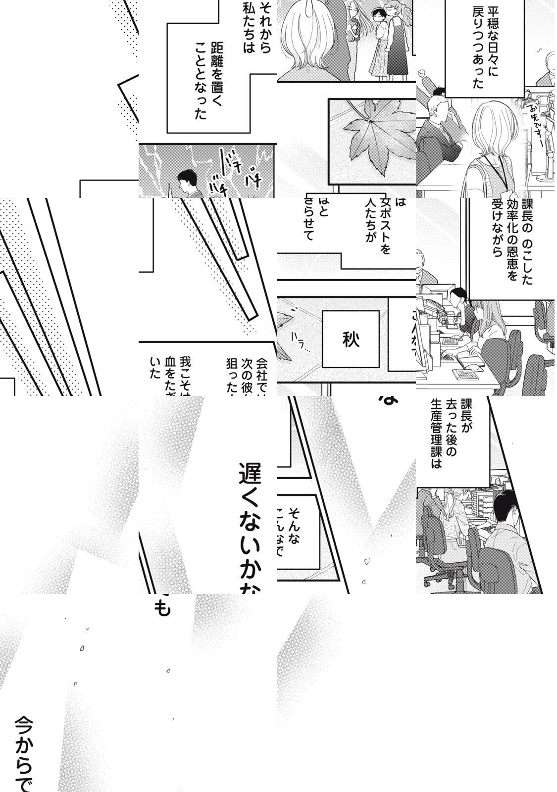 真琴は、メーカーに勤務するOL。前の会社でメンタルを壊した彼女は、週4勤務の今の会社に転職し、心穏やかに「睡眠第一」の生活を送っている。そんな彼女の部署に赴任してきたのは、エリート課長・新藤。ひょんなことで彼を介抱するハメになった真琴は、目覚めた彼から突然のキスをされる! さらに、昔一度だけ関係を持った幼なじみ・晴が家を訪ねてきて? 2人の男とのトライアングル・ラブの行方は?