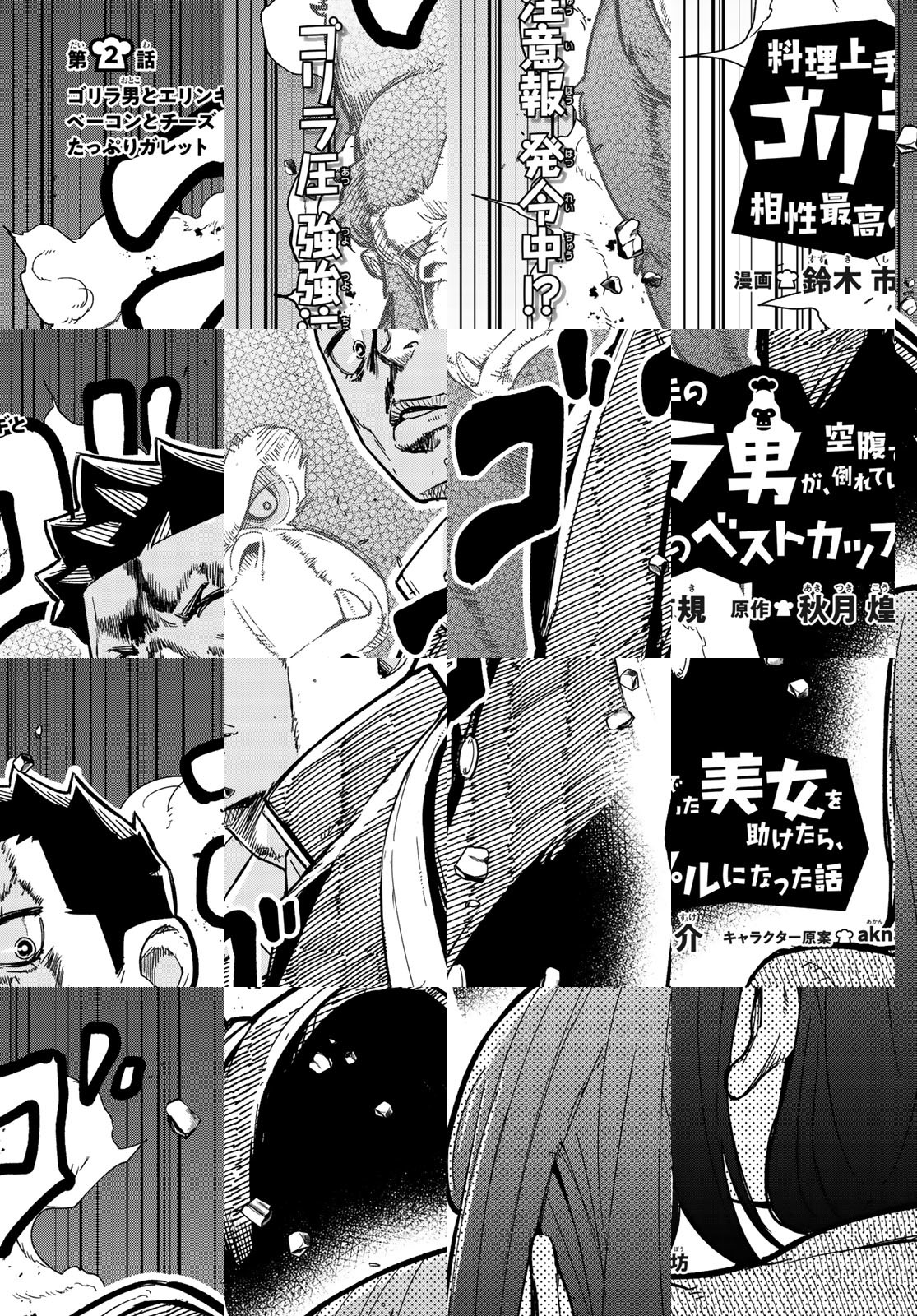 youtube100万再生の人気動画をマンガ化!ゴリラmeetsゆるふわガール!?超格差ラブコメ、開幕!!高校生・アキラは、ゴリラ似のいかつい外見のせいで、周囲から恐怖される日々を送っていた。彼はある日、行き倒れていた空腹女子・ハルカと出会う。アキラは放ってはおけずに、料理をふるまう。そのゴリラな見た目に反して、超料理上手であった。ハルカは、その美味に酔いしれ、ゴリラ料理の虜となっていくのであった…!!