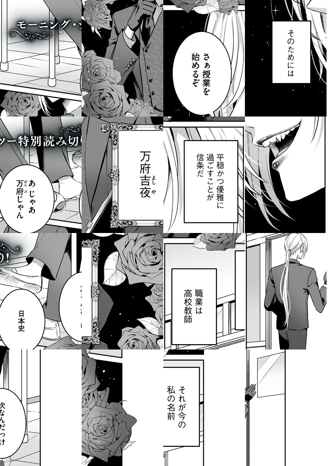 吸血鬼の正体を隠し、高校教師として日本史を教えている万府吉夜(ばんぷよしや)。だが、彼が吸血鬼であることは学校中の誰もが知るところ。今日も、万府先生がちゃんと先生をやれるように、心優しい生徒と先生たちがそれとなくサポートしていきます。
