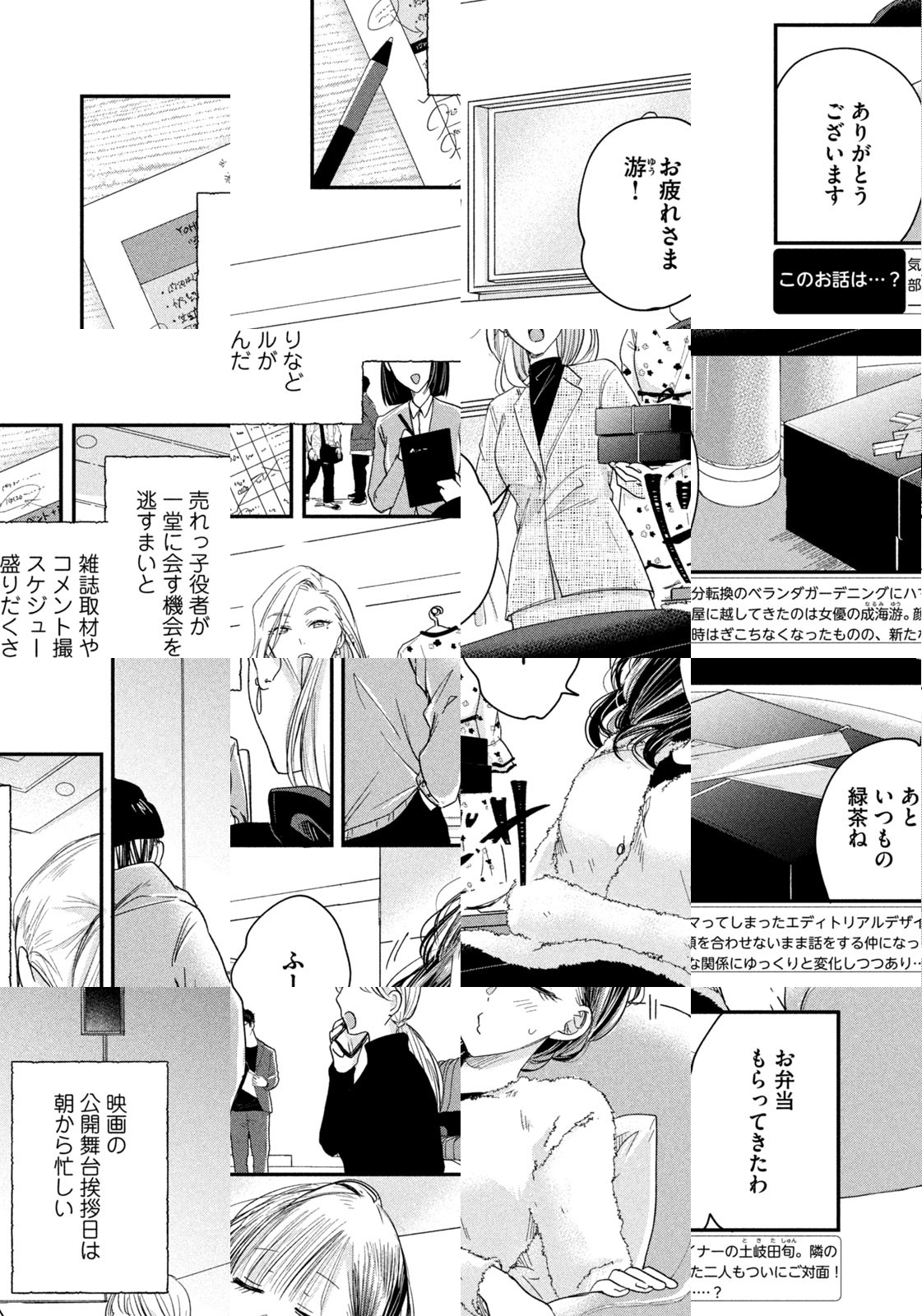 フリーのエディトリアルデザイナー・土岐田旬は、仕事に追われ部屋に籠りっぱなしの毎日。癒やしを求めてベランダガーデニングにハマるように。そんなある日、隣にちょっと変わった天然系の女性が引っ越してきた。ふとした出来事から、お互いの顔も知らぬままベランダの隔壁越しに話をするようになる二人。実は隣の女性は新進俳優・成海游なのだが……。ベランダとグリーンが繋ぐ隔壁越しの二人は?