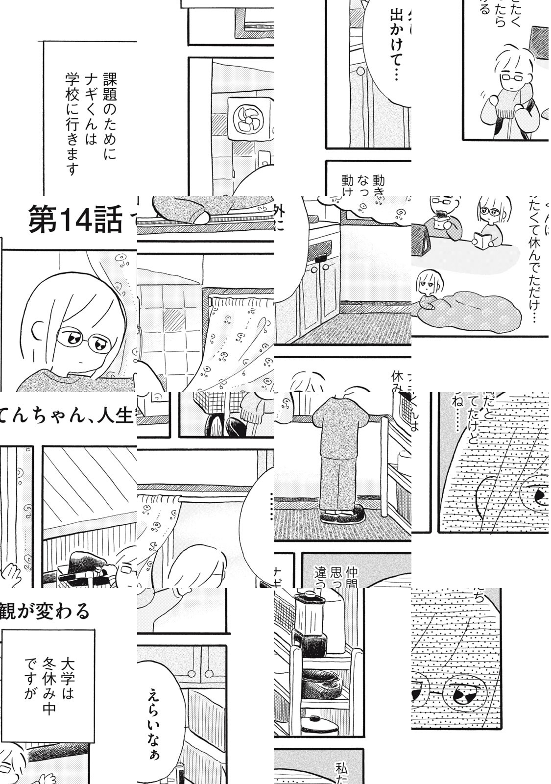 昼は契約社員として福祉の仕事に付きながら、夜はカフェでアルバイト。てんてこまいな毎日を、パートナーの凪くんとサバイブする天ちゃんに、ある日「契約社員から正社員にならないか」という話が舞い込む。張り切って働く天ちゃん。でも心が悲鳴を上げ休職することに。休職したら「すべてOK」なんて、なかなかそういう訳にもいかない世の中で、持続可能な暮らしを考えるほっこりストーリー。
