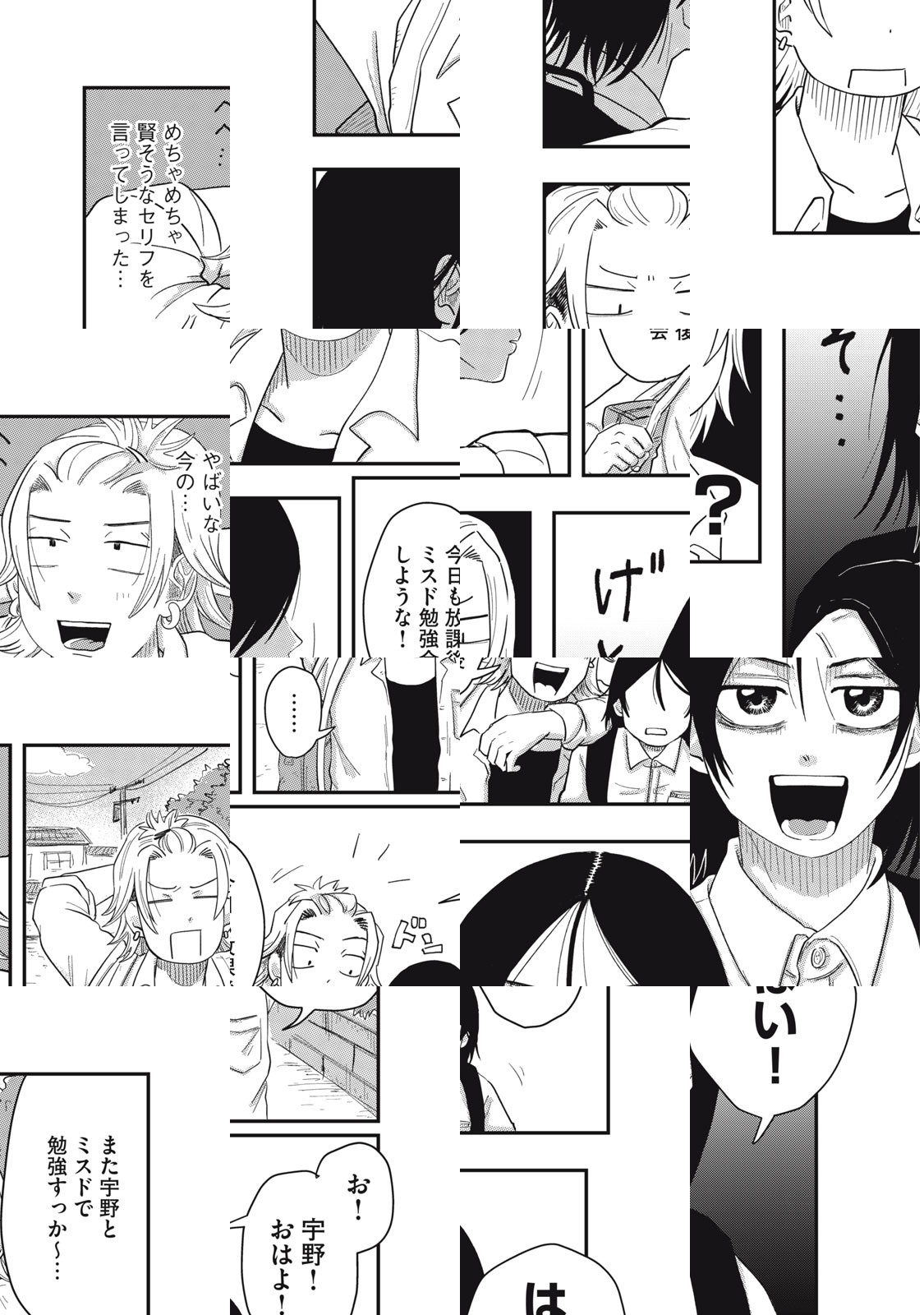 勉強もバイトも続かないドロップアウトぎみなヤンキーの小林。ある日彼のクラスに変わり者の宇野が転校してくる。小林が先輩から怪しいバイトに誘われているところを宇野に助けられ、その出来事をきっかけに2人は仲良くなる。宇野のことを知れば知るほど彼の生き方に惹かれ、自分も変わろうと行動する小林だったが…。〝普通〟ができない正反対の2人がそれぞれ壁にぶつかりながらも楽しく生きるために奮闘する友情物語。