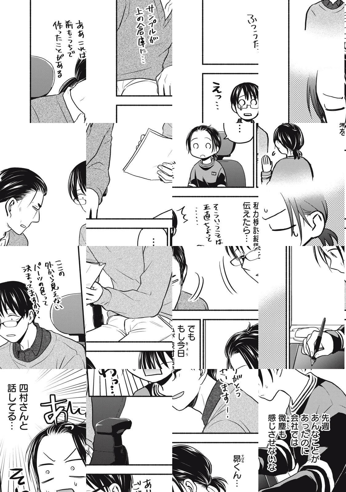 おもちゃの企画開発会社でグラフィックデザイナーをしている柴田かさね(しばたかさね)は、あることで悩んでいた。悩みの発端は、思いがけない事故で同僚の榎田昴(えのきだすばる)のお尻を触ってしまったこと…! 榎田のお尻の感触が、かさねの大好きなキャラクターの着ぐるみの感触と似ていて興味を持った。けれど、それと同時に、榎田に嫌な思いをさせてしまったんじゃないかという罪悪感が拭えない。榎田は「気にしてない」と言ったけれど、その表情はどこか怯えて苦しそうで…。もっと、きちんと謝らなければ!と強く思うかさね。一方で、榎田にはある隠し事があって――。