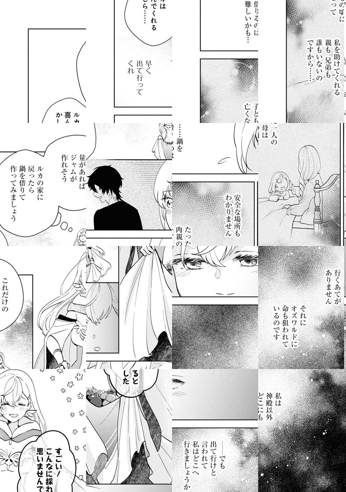 神殿の聖女・ルチルは、婚約者の魔術師・オズワルドに婚約破棄された上、王命によって神殿から追放されてしまう。行くあてのない彼女は魔の森へと足を踏み入れるが、そこで半分狼の姿をした元騎士団の青年・ルカに出会うことに。彼の半狼姿が呪いによるものと知ったルチルは、聖女の力によってルカを一時的に人間の姿に戻すことに成功する。それは、ハートフル愛されストーリーの始まり…!?
