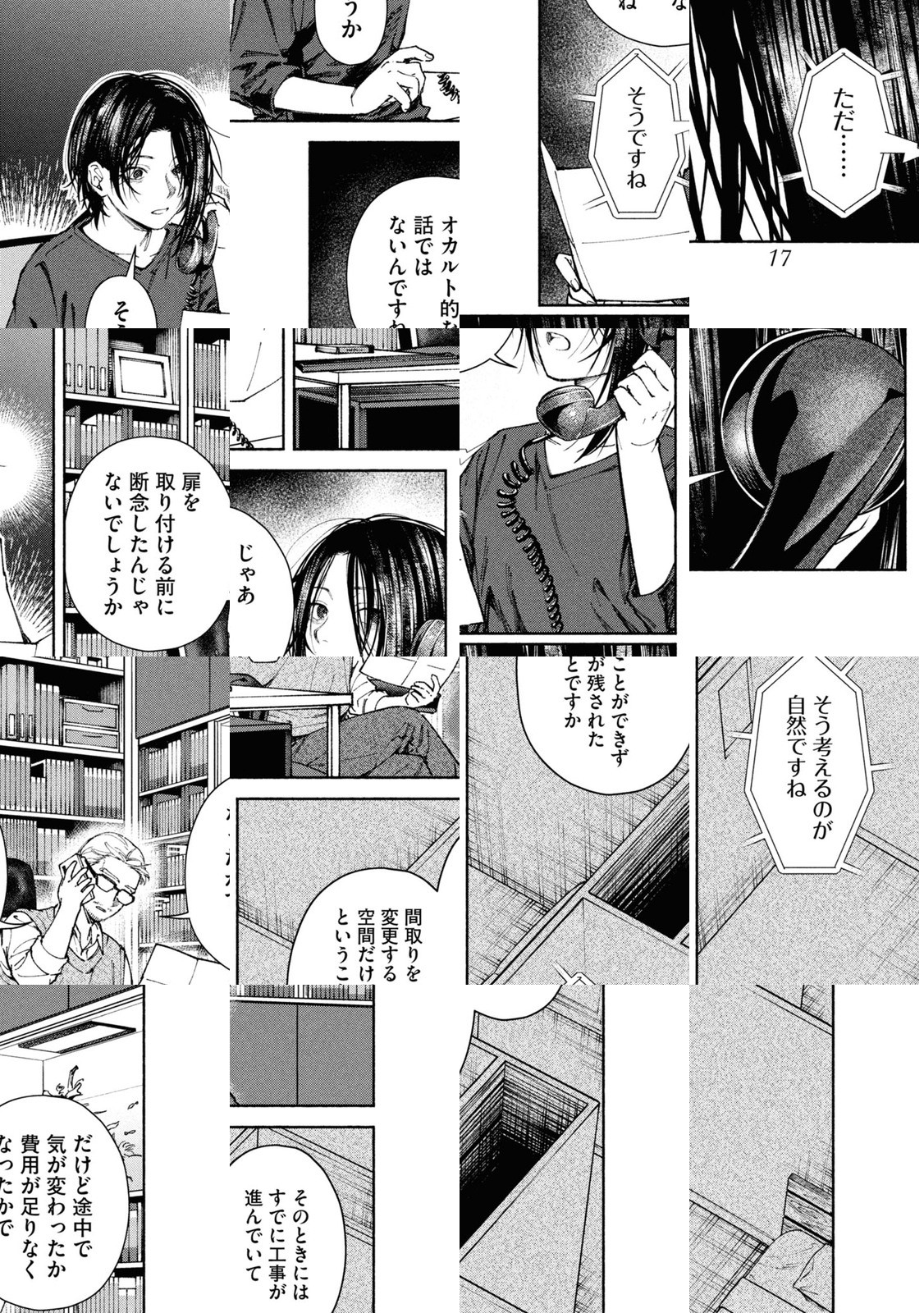 オカルト専門ライターの「私」の元にもたらされた、とある家の間取り図。一見ごく普通の一戸建て住宅だが、知人の設計士・栗原に意見を求めると、彼は「この家には変なところがある」と話し始めた……。この間取り図には、何かが隠されている…。話題の不動産ミステリー、待望のコミカライズ!!