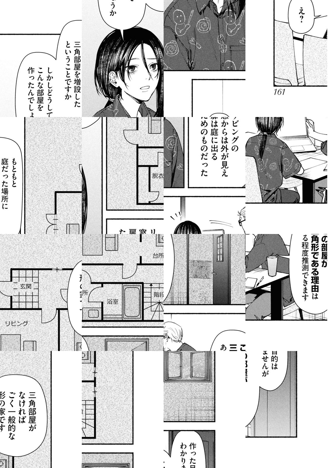 オカルト専門ライターの「私」の元にもたらされた、とある家の間取り図。一見ごく普通の一戸建て住宅だが、知人の設計士・栗原に意見を求めると、彼は「この家には変なところがある」と話し始めた……。この間取り図には、何かが隠されている…。話題の不動産ミステリー、待望のコミカライズ!!