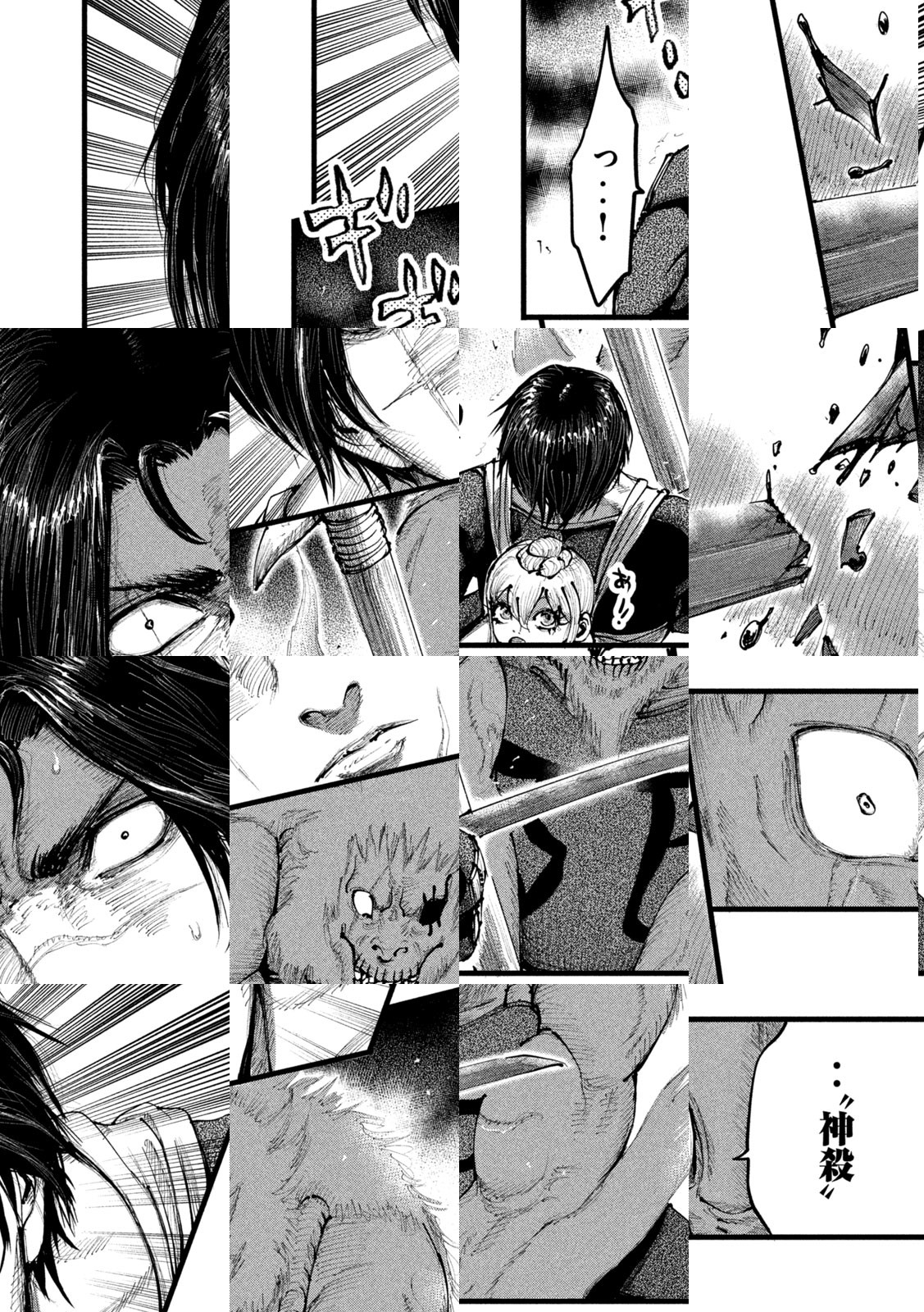 神の侵攻によって滅亡に瀕する日ノ本に現れたのは、“神殺”と呼ばれる男だった。四肢のない少女を背負ったその男が持っていたのは、文字通り“神を殺せる力”――。絶対なる存在に立ち向かう叛逆のダークファンタジー、開幕。