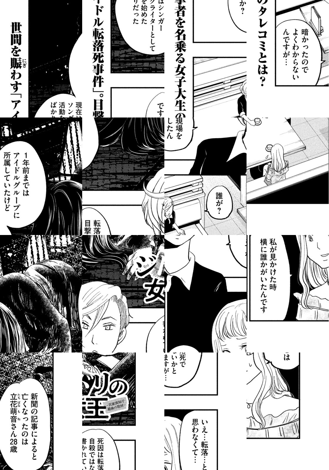 週刊誌記者の氏家真知子は、芸能ネタでスクープを連発し、業界内でも知られた凄腕記者…だった。ある時、自分がメインを張れなくなったことを悟ったタイミングで、地方の事件に心を奪われる。直感的にこの事件は自分が追わなきゃと思った真知子、ここから彼女の逆襲が始まる。