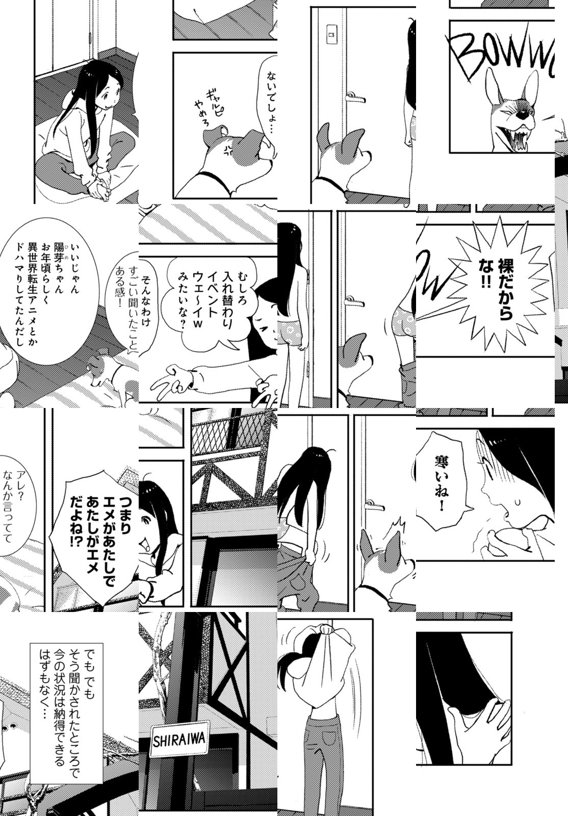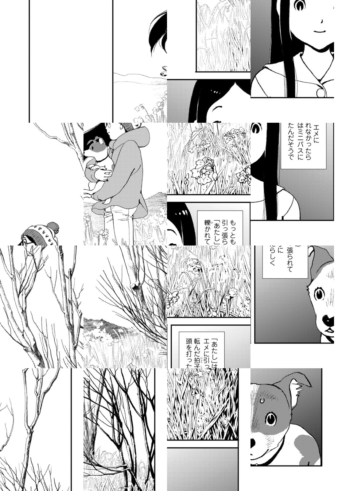 中学2年生の陽芽と、飼い犬のエメ(ジャックラッセルテリア、13歳、♀)は姉妹同然の関係。そんな1人と1匹がお散歩中に交通事故に遭ってしまう! 目が覚めると、待っていたのは世にも奇妙な不思議な状況で…?