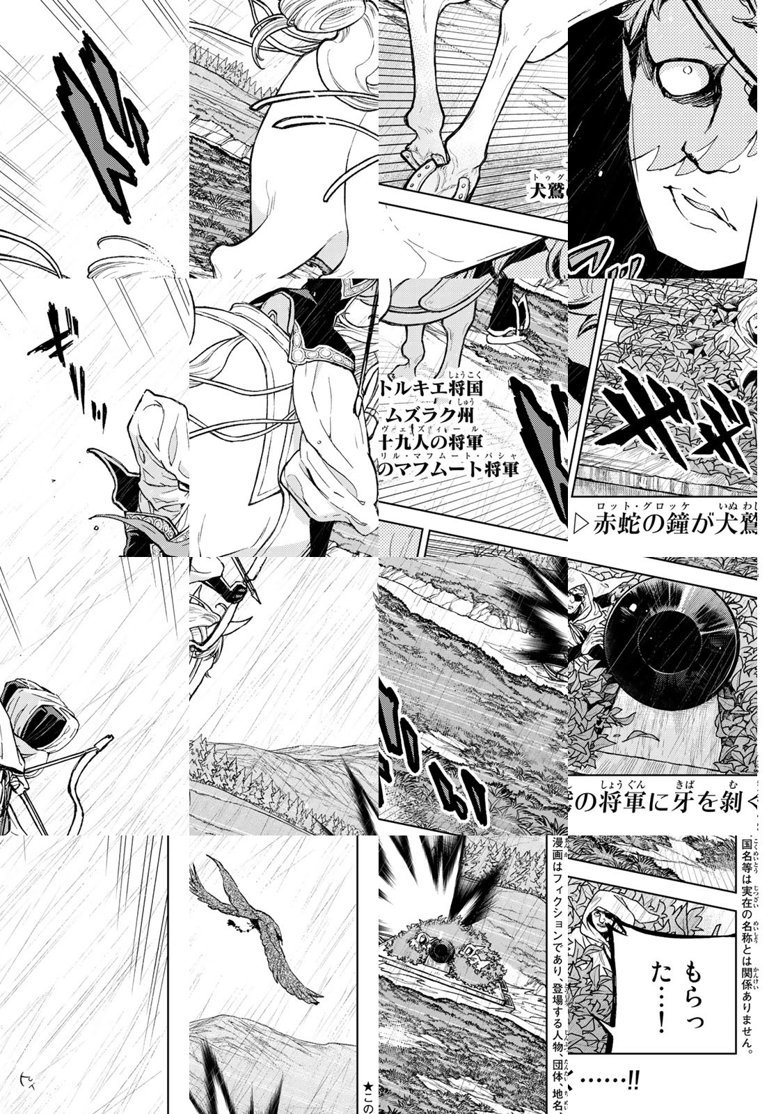 ここではない世界、今ではない時代。将軍(パシャ)と呼ばれる為政者たちの治める草原と砂漠の国・トルキエ将国。隣国・バルトライン帝国との戦争から12年、交易で得た巨万の富をもって復興を遂げたトルキエに再び、帝国の魔の手が迫る。就任10日目の新米将軍・マフムート、犬鷲・イスカンダルを相棒に国家間に渦巻く陰謀と策略を切り裂く!