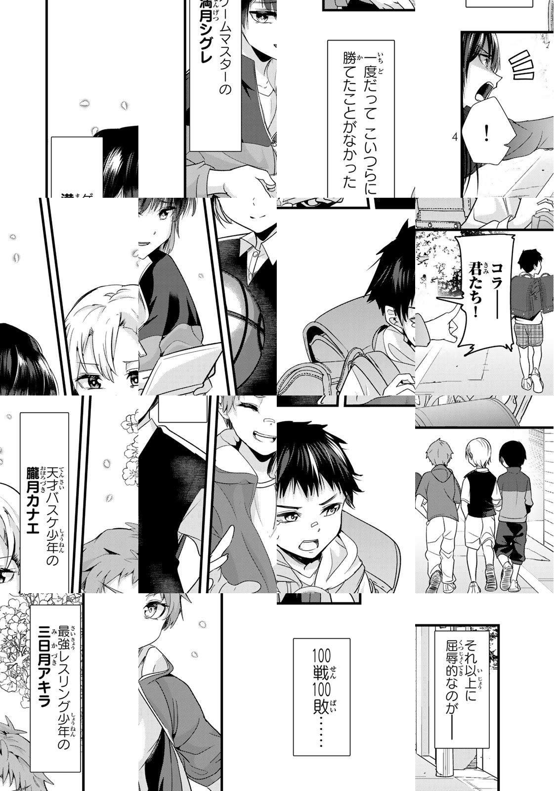 子供のころ、小太郎は地元のいじめっ子によって屈辱の日々を送っていた。レスリングの天才少年・アキラ、バスケの天才少年・カナエ、天才ゲーマー少年・シグレにあらゆる勝負で負け続けていたのだった高校生となった小太郎は、仕返しするべく3人と再会したのであったが…!? いじめリベンジからの、まさかのラブコメ!