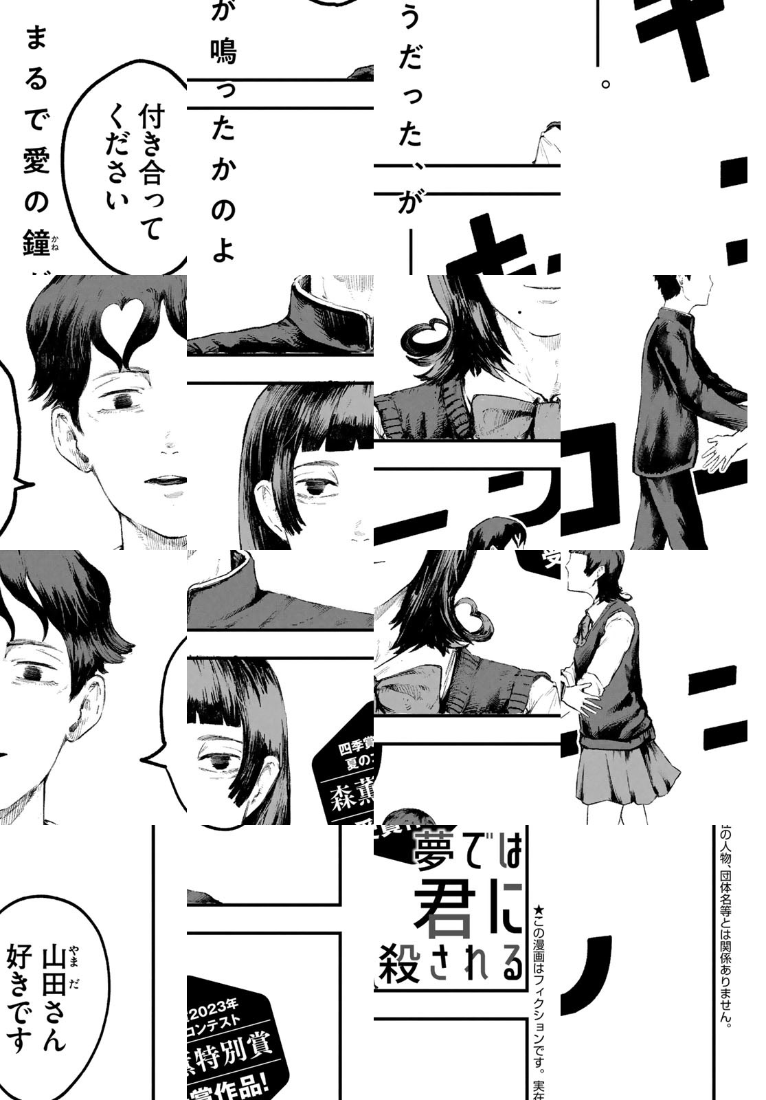 【四季賞2023夏 森薫特別賞】大好きな山田さんに殺される夢ばかり見る田中くん。意を決した告白は「人を殺しそうな感じがするから」と断られるも、そのとき渡した手紙をきっかけに、山田さんから呼び出しがある。【選考委員・森薫氏が作者のコメディセンスを絶賛! もうひとつの同著者受賞作『ロシにゃんルーレット』も公開中!】