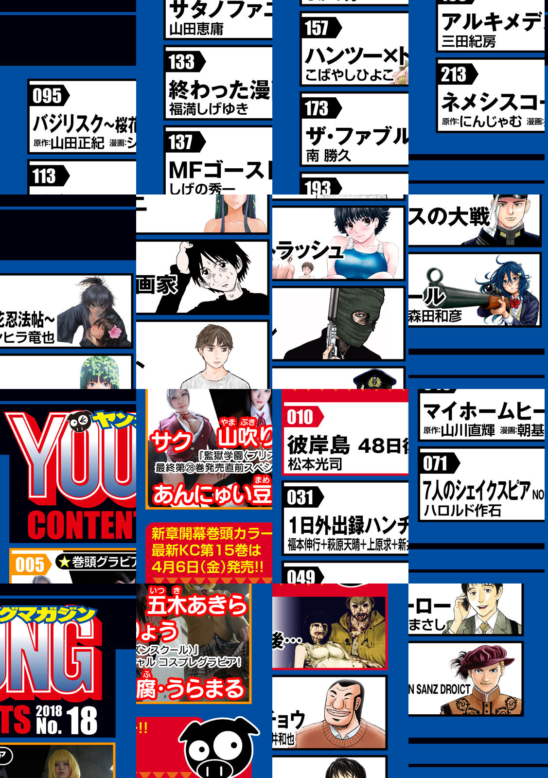 ※グラビアは一部掲載しておりません。 【巻頭カラー】新章開幕! 『彼岸島 48日後…』――明が高熱に倒れる中、食料調達に向かう鮫島兄弟! 吸血鬼たちに囲まれて…リーダー不在の圧倒的窮地に兄弟の絆が試される! 【月イチ連載】『NeuN<ノイン>』――アハトを死に追いやったゼクス…。その過去が明らかに! 【巻頭グラビア】『監獄学園』最終KC28巻発売直前! 裏生徒会コスプレグラビア! 山吹りょうちゃんが万里、五木あきらちゃんが花ちゃんに。さらにサクちゃんが芽衣子に扮し、裏生徒会を完全再現!! 興奮必至のコスプレお楽しみに!
