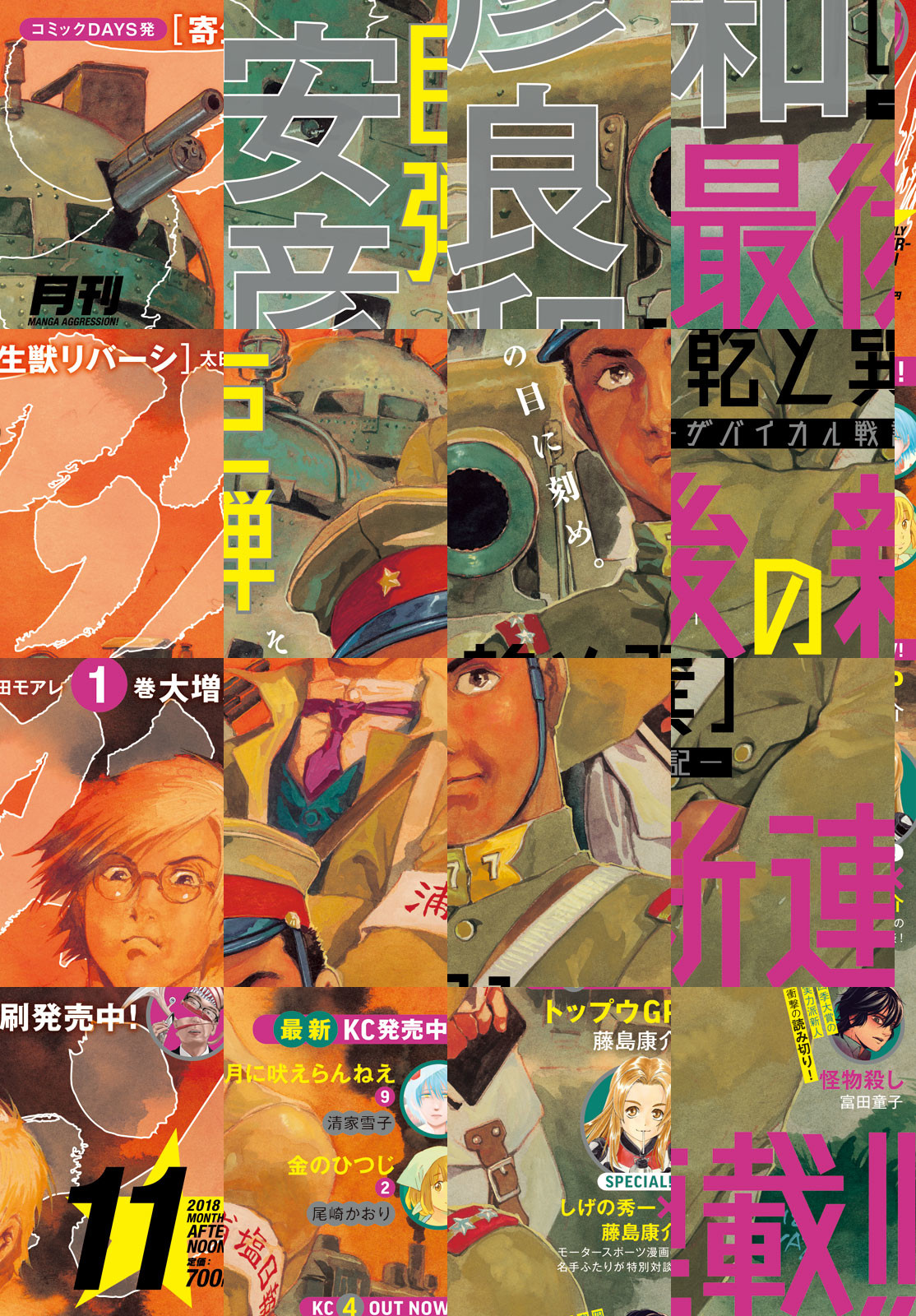『機動戦士ガンダム THE ORIGIN』『アリオン』『虹色のトロツキー』『クルドの星』『天の血脈』等々、数多の傑作を世に送り出した巨匠・安彦良和氏がアフタヌーン11月号より最後の新連載を開始します。題名は『乾と巽 -ザバイカル戦記-』。百年前、シベリアの戦場で出会ったふたりの男の物語です。リビングレジェンド渾身のTHE LAST、お見逃しなく。9月21日に単行本4巻発売の藤島康介氏『トップウGP』は巻頭で登場。『頭文字D』『MFゴースト』のしげの秀一氏とのスペシャル対談記事つきです。 *電子配信版は通信環境によりダウンロードに時間がかかる場合がございます。