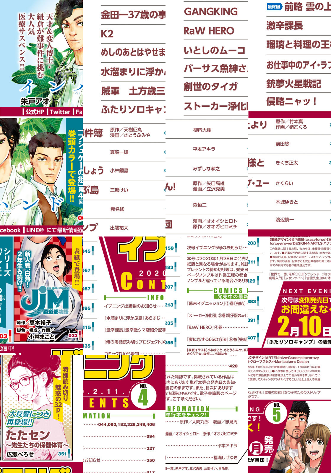 感動・驚き・興奮届けるイブニング4号!! ★★『いぬやしき』★★『水溜まりに浮かぶ島』★★『賊軍 土方歳三』★★『金田一37歳の事件簿』★★『ふたりソロキャンプ』★★『JJM 女子柔道部物語』★★『銃夢火星戦記』★★『RaW HERO』★★『創世のタイガ』など話題作続々! 電子版限定リバイバル連載『いぬやしき』スタート!