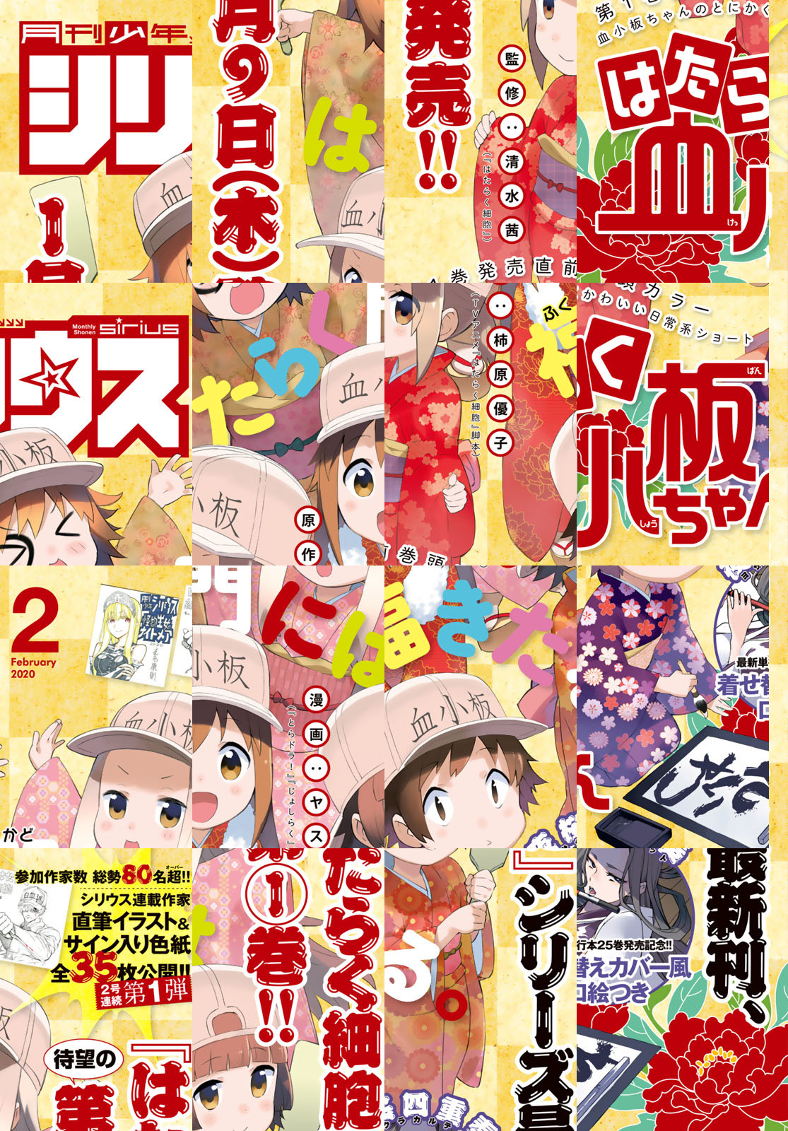 血小板ちゃんのかわいい日常系ショート漫画『はたらく血小板ちゃん』が表紙&巻頭カラーで登場!! センターカラー『レイジング・ヘル』ほか『時間停止勇者』、『川島芳子は男になりたい』、『魔法使い黎明期』もは1月9日第1巻一斉発売!! また連載再開となる『将国のアルタイル』、『小学生がママでもいいですか?』、大人気連載『転生したらスライムだった件』、『ライドンキング』、『人形の国』など超豪華ラインナップでお届けいたします! 『夜桜四重奏』着せ替えカバー風口絵、2号連続第1弾!シリウス連載作家直筆イラスト&サイン入り色紙イラストもついてきます!!