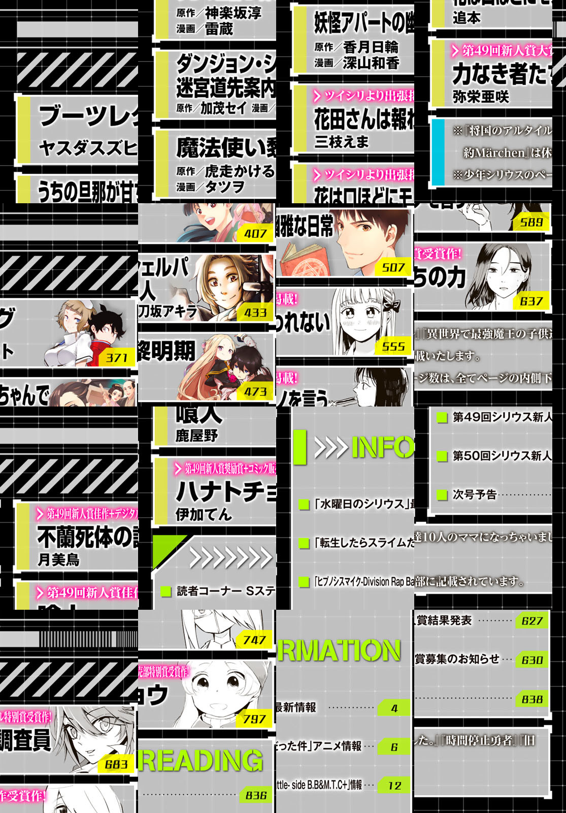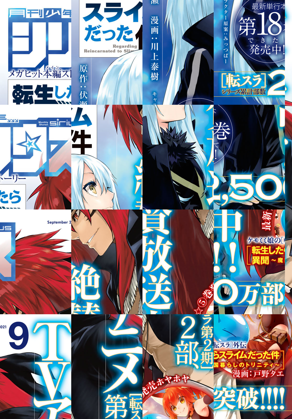 TVアニメ第2期第2クールが絶賛放送中の大人気連載、『転生したらスライムだった件』が表紙&巻頭で登場! 『転スラ日記』をはじめとした、「転スラ」スピンオフ作品も好評連載中! センターカラーは最新単行本第4巻が8月6日に発売される『爆宴』! さらに『ブーツレグ』や『妖怪アパートの幽雅な日常』、大人気連載『人形の国』など豪華ラインナップでお届け! 今月号は新人賞受賞作品も掲載しています!