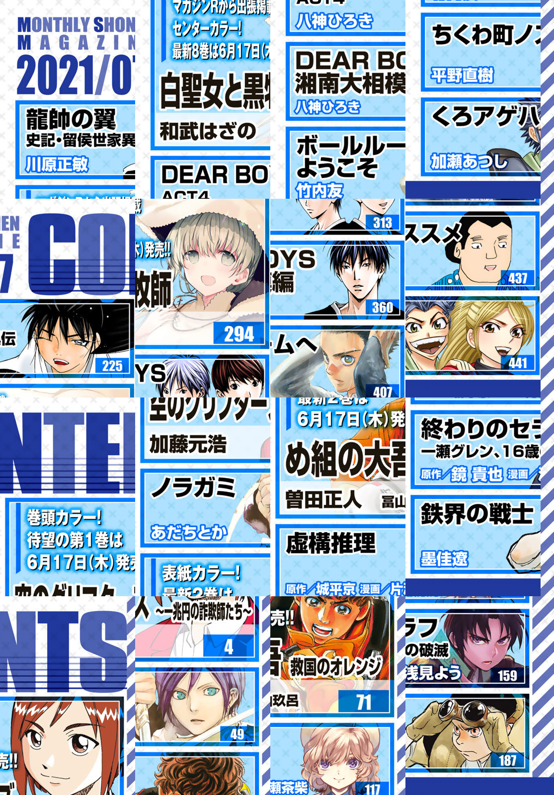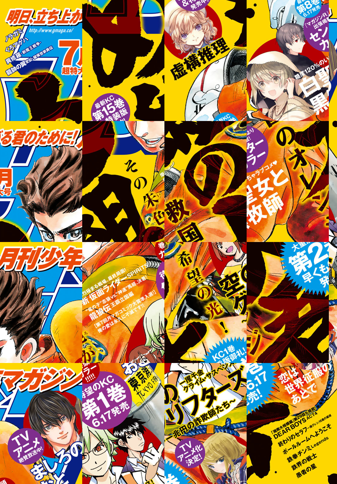 ★託された願い。背負う想い。その朱(あか)色が、希望の光--!! ★最新単行本2巻6/17発売『め組の大吾 救国のオレンジ』表紙で登場!! ★単行本1巻6/17発売開始!!一攫千金クライムサスペンス『空のグリフターズ』巻頭カラー!! ★マガジンRよりセンターカラーで出張掲載!! 糖度120%のいちゃラブコメ『白聖女と黒牧師』!! ★TVアニメ絶賛放映中!! 『ましろのおと』!! ★最新単行本15巻通常版&特装版発売中!!『虚構推理』!! ★アニメ化決定!! 『恋は世界征服のあとで』!! ★読むと強くなれる、月マガ7月号!!