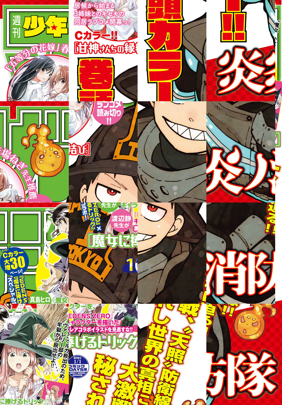 ※『はじめの一歩』『巻頭グラビア』および一部の記事は収録されていません。「週刊少年マガジン」電子版は紙版と一部内容が異なる場合がございます。ご了承ください。 【巻頭カラー】『山之内すず』×『炎炎ノ消防隊』特別インタビュー&グラビア !![炎炎ノ消防隊] 【Cカラー】Cカラー!『EDENS ZERO』×『魔女に捧げるトリック』スペシャルコラボあり![魔女に捧げるトリック] 『FAIRYTAIL』『ダイヤのA』(第1部)が再連載掲載中!