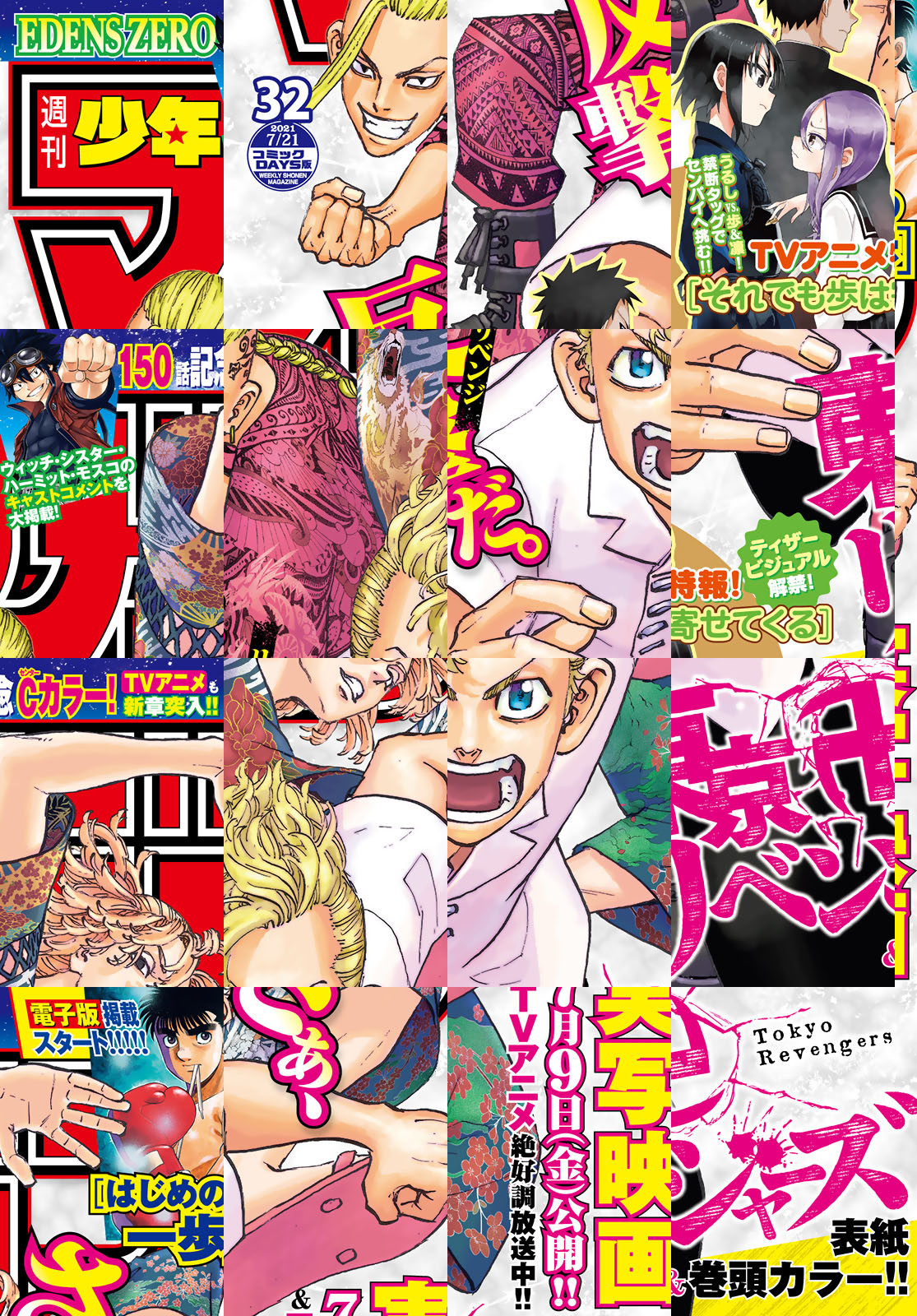 ※『巻頭グラビア』および一部の記事は収録されていません。紙版と一部内容が異なります。ご了承ください。 【表紙&巻頭カラー][東京卍リベンジャーズ]実写映画7月9日(金)公開!!TVアニメも絶好調放送中!! 【Cカラー】[それでも歩は寄せてくる]TVアニメ特報!!うるしVS.歩&凛、禁断タッグで先輩に挑む! 【Cカラー】[EDENS ZERO]連載150話記念!TVアニメも新章突入!! [はじめの一歩]週マガ電子版掲載スタート!! 『FT』『ダイヤのA』の再掲載が読めるのは電子版だけ!