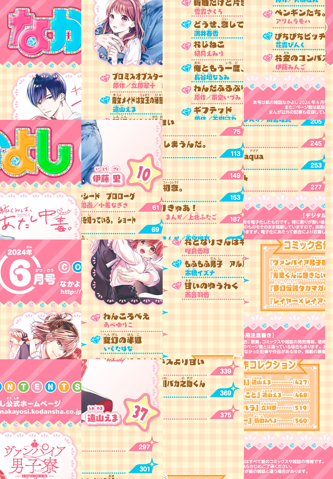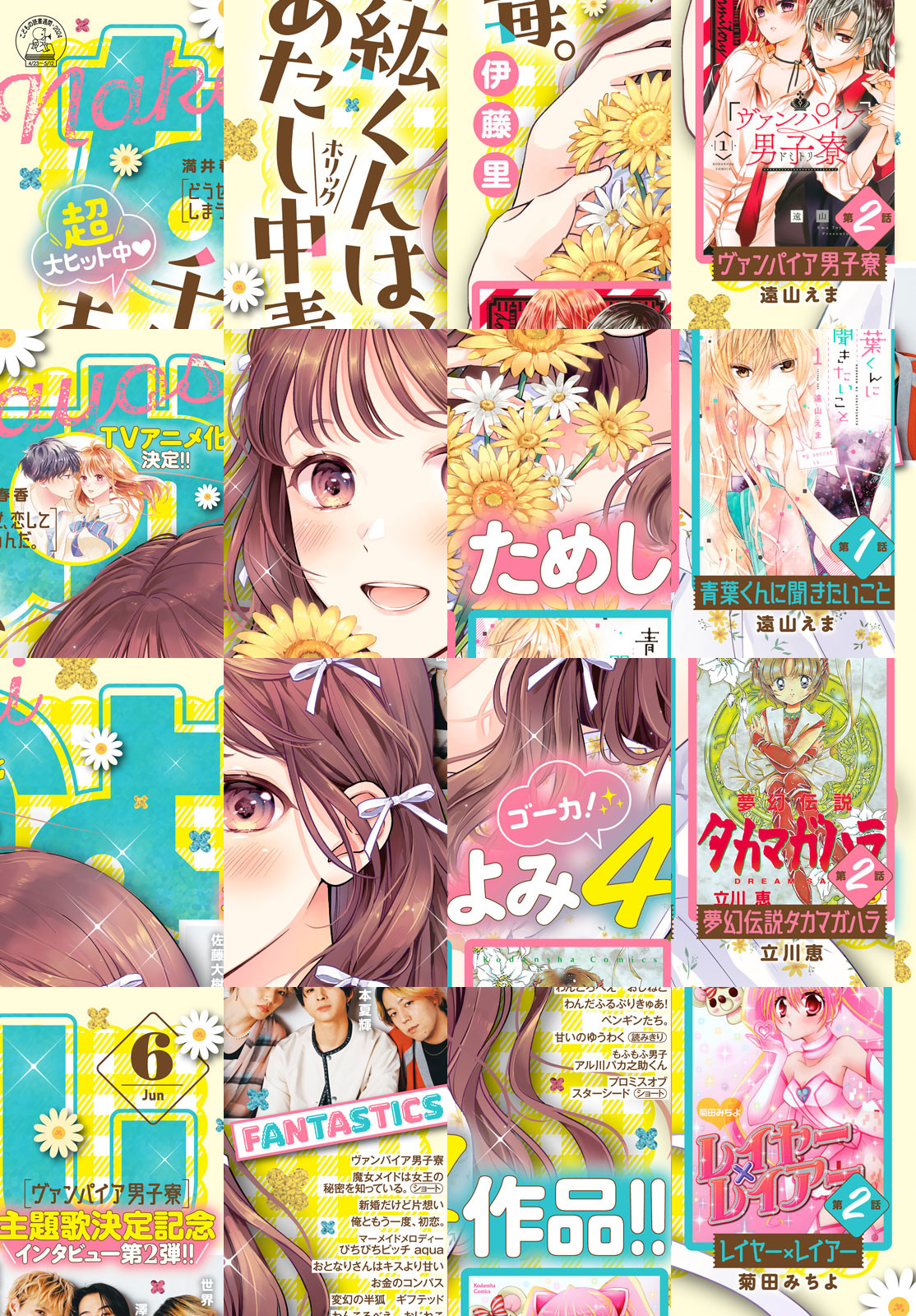なかよし6月号は、5月2日(木)発売! ドラマチック溺愛ラブ★ 『千紘くんは、あたし中毒。』が表紙&巻頭カラーで登場! 『ヴァンパイア男子寮』TVアニメ主題歌「Sugar Blood Kiss」担当の「FANTASTICS」より、世界さん、佐藤大樹さん、澤本夏輝さんのスペシャルインタビューも! 他にも、TVアニメ化決定『どうせ、恋してしまうんだ。』、センターカラー登場の『新婚だけど片想い』など、ますます絶好調な大人気連載陣がイッパイ★ ハッピーな連休を、なかよし6月号で最上級なハッピーにチェンジしよー♪ ※付録の「『ヴァンパイア男子寮』クリアスタンド2個セット」は電子版には付きません。