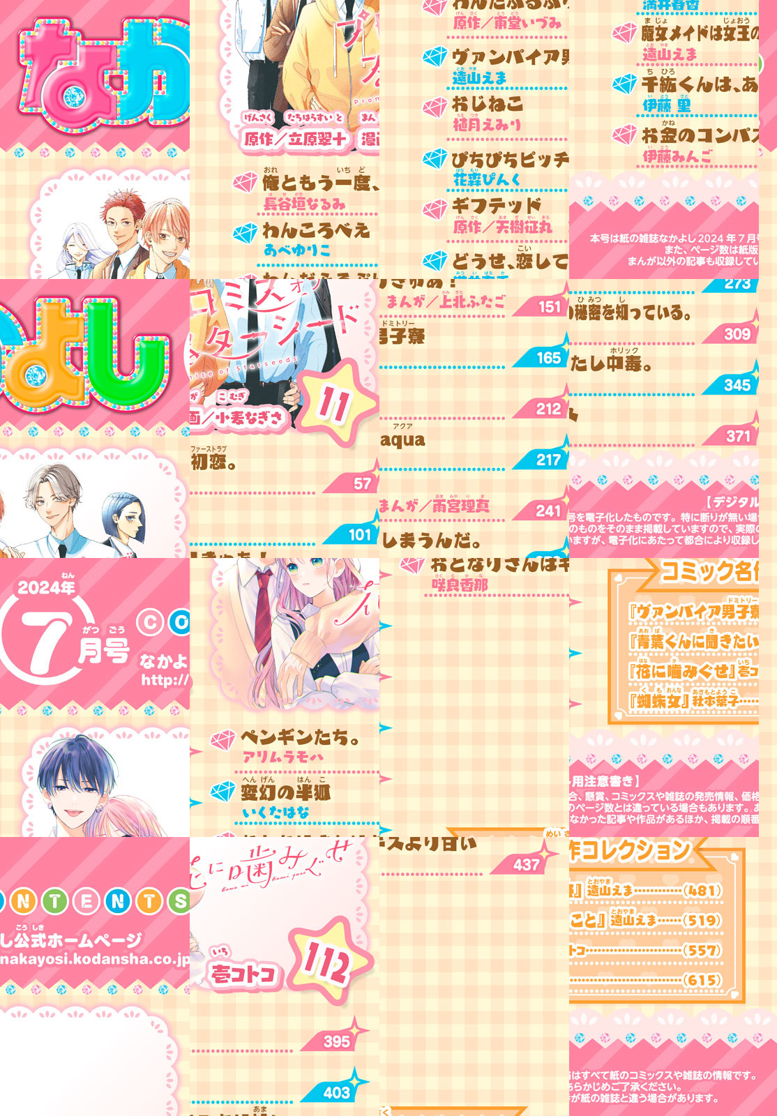 6月3日(月)発売のなかよし7月号は、注目度No.1ラブストーリー『俺ともう一度、初恋。』表紙が目印! TVアニメ放送中『ヴァンパイア男子寮』より、声優・土岐隼一さんと梅原裕一郎さんの対談&主題歌担当「FANTASTICS」のスペシャル情報も! さらに、新連載★ボーイズアイドル養成学園が舞台の青春ストーリー『プロミスオブスターシード』(原作:立原翠十、漫画:小麦なぎさ)が巻頭カラーで登場! 他にも、王道バディ・ミステリー『ギフテッド』や、キケンで甘い大注目ラブ『花に噛みぐせ』が読めるのは、なかよしだけ! なかよしと一緒なら、雨の日もココロ踊っちゃう★ ※付録の「『ヴァンパイア男子寮』5way★クリアファイル」は電子版には付きません。