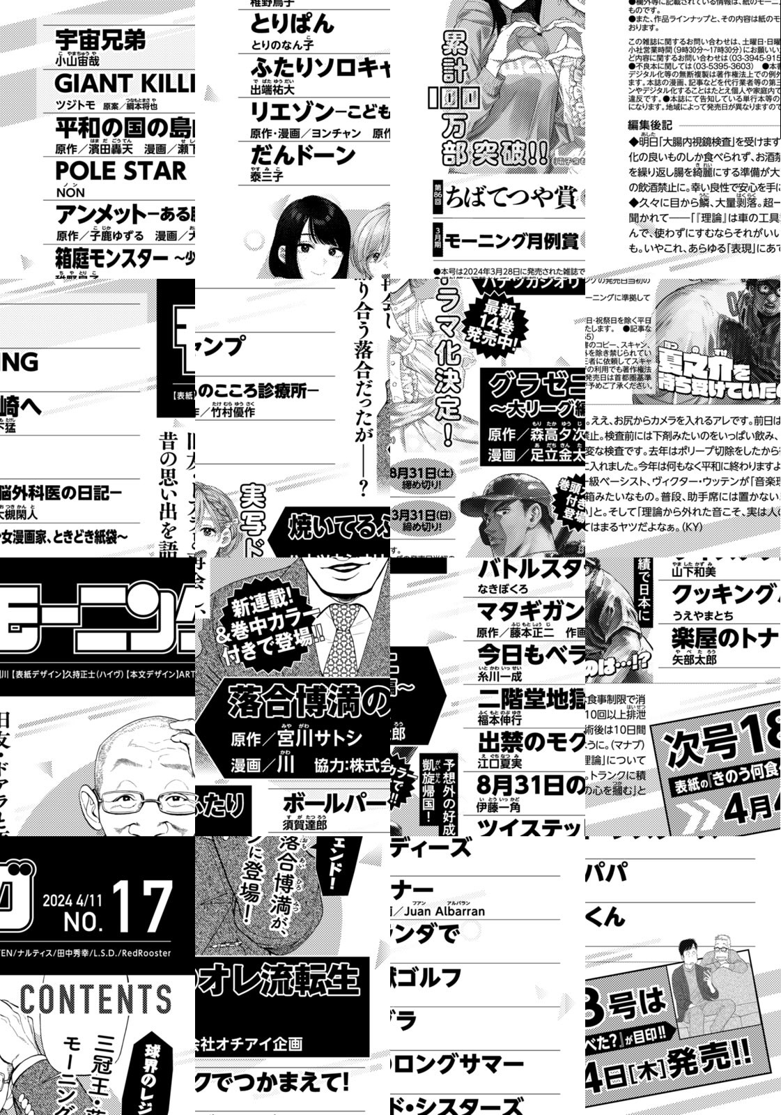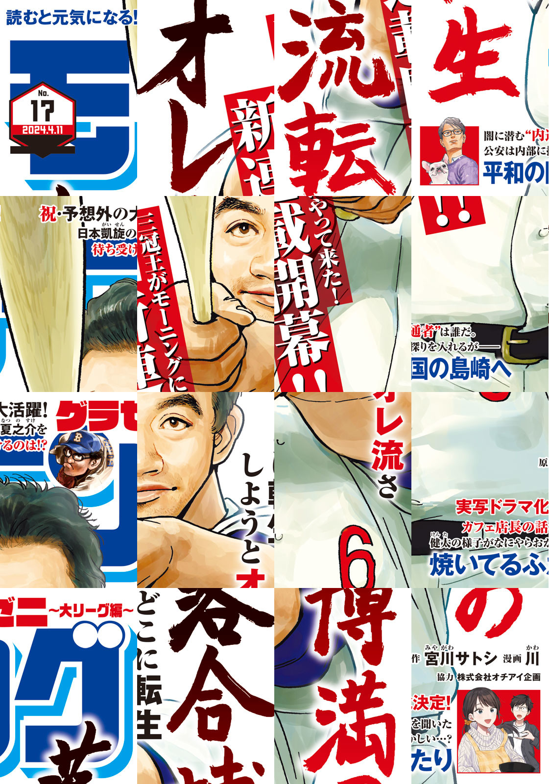 ◎『落合博満のオレ流転生』は新連載&巻中カラー付きで登場! 球界のレジェンド! 三冠王・落合博満が、モーニングに登場! 旧友・ドアラと再開し、昔の思い出を語り合う落合だったがーー? ◎『焼いてるふたり』。最新14巻発売中! 実写ドラマ化決定! 累計100万部突破!!(電子含む) ◎『グラゼニ~大リーグ編~』は巻頭カラー付きで登場!! 予想外の好成績で日本に凱旋帰国! 夏之介を待ち受けていたのは…!? ※作品ラインナップは、紙の「モーニング」に準拠しておりますが、一部、異なる場合があります。