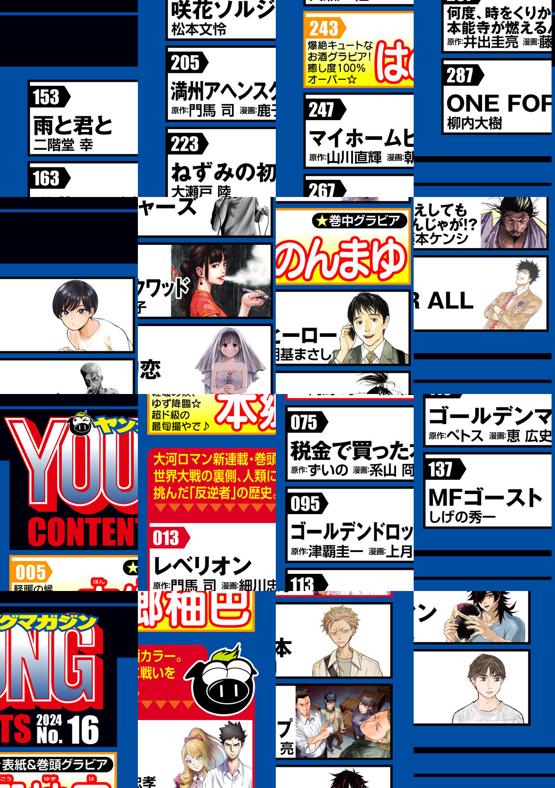 【巻頭カラー】『レベリオン』 これは世界大戦の裏側、人類に戦いを挑んだ「反逆者(レベリオン)」の歴史。『満州アヘンスクワッド』門馬司×『ツワモノガタリ』細川忠孝 最強タッグが熱筆!!超スケールで秘められた歴史を描く異能大河ロマン!!〈表紙&巻頭グラビア〉「本郷柚巴」軽暖の候、ゆず降臨でごわす--!超ド級の最旬撮やで♪〈巻中グラビア〉「はのんまゆ」爆絶キュートなお酒グラビア!癒し度100%オーバーの最高カット満載☆〈巻末グラビア〉「白河 芹」SNS総フォロワー数約100万人!話題の女の子がYM初登場♪