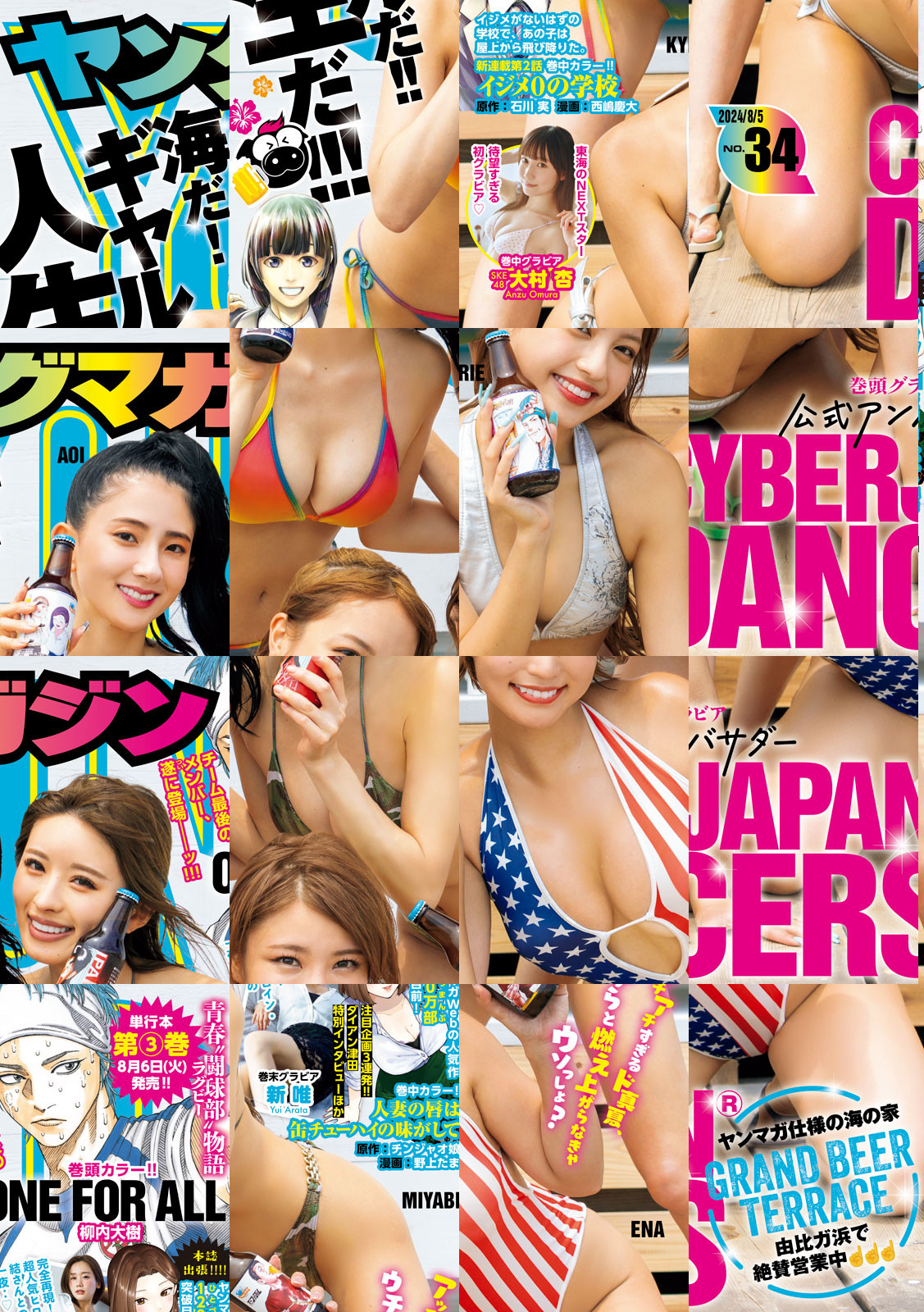 〈巻頭カラー〉柳内大樹『ONE FOR ALL』チーム暁天、最後のメンバー登場ッ!!!北村との対決に勝った嵐たちは、残る1人の2年生も部に連れ戻そうと奮起する。最後のパイセンは・・・・まさかの引きこもり!?〈巻中カラー〉チンジャオ娘&野上たま『人妻の唇は缶チューハイの味がして』ヤンマガWeb人気作が120万部(ルビ:ひとづまんぶ)突破目前を記念して本誌出張!!〈巻末カラー〉石川 実&西嶋慶大『イジメ0の学校』イジメが無いはずの学校で、彼女の絵は汚された。四条さんの死から数日。彼女はこの学校でイジメられていたのか、真実を目指して清和が動き出す。〈表紙&巻頭グラビア〉ヤングマガジン公式!海の家 ヤンマガGRAND BEER TERRACE in由比ヶ浜の公式アンバサダーCYBERJAPAN DANCERS(ENA、MIYABI、AOI、KYRIE)表紙・巻頭に登場!なんもしなくたってアッツい夏!もっとアツくなったってええんちゃうの?〈巻中グラビア〉SKE48 大村杏 次世代担う東海の星!!待望のグラビアデビューっす☆〈巻末グラビア〉新唯「人妻缶チューハイ」完全再現!超人気ヒロイン・結さんとの一夜・・♪