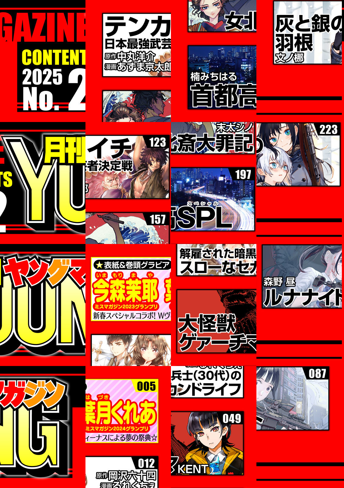 新年のご挨拶!まずは最強のレディたちからどうぞ・・・・!巻頭グラビアはミスマガジン2023×2024スペシャルコラボ!今森茉耶ちゃん&葉月くれあちゃんの、ヤンマガが誇るW女神による夢の祭典!!巻末グラビアは福井梨莉華ちゃん!圧巻の愛されBODYで話題沸騰!ゴールデンルーキー月刊ヤンマガ初登場!!漫画は解雇された暗黒兵士(30代)のスローなセカンドライフ!VS.イダ、ついに佳境の巻頭カラー!相対することになったレーディたちと最強四天王のイダ。ついに本気を出したイダとの戦いが始まる!