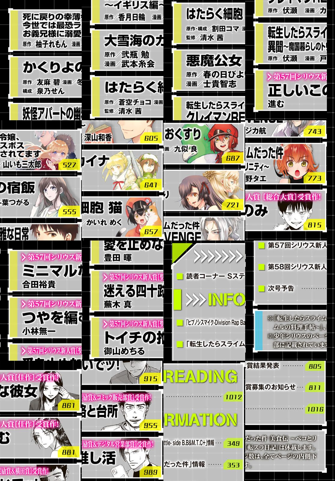 ヤスダスズヒト描き下ろし!『夜桜四重奏』×『ブーツレグ』のコラボ表紙!!『ブーツレグ』第4巻&第5巻の同時発売!シリーズ初のコミックス2冊同時刊行です。 待望のコミックス第1巻ができたて発売中の『DT転生』が裏表紙をジャック!ほかにも4月からアニメ新シリーズが放送の『転生したらスライムだった件』とその大人気スピンオフシリーズや、大重版の『タワーダンジョン』、さらに重版続々の『デキる猫は今日も憂鬱』などが掲載。