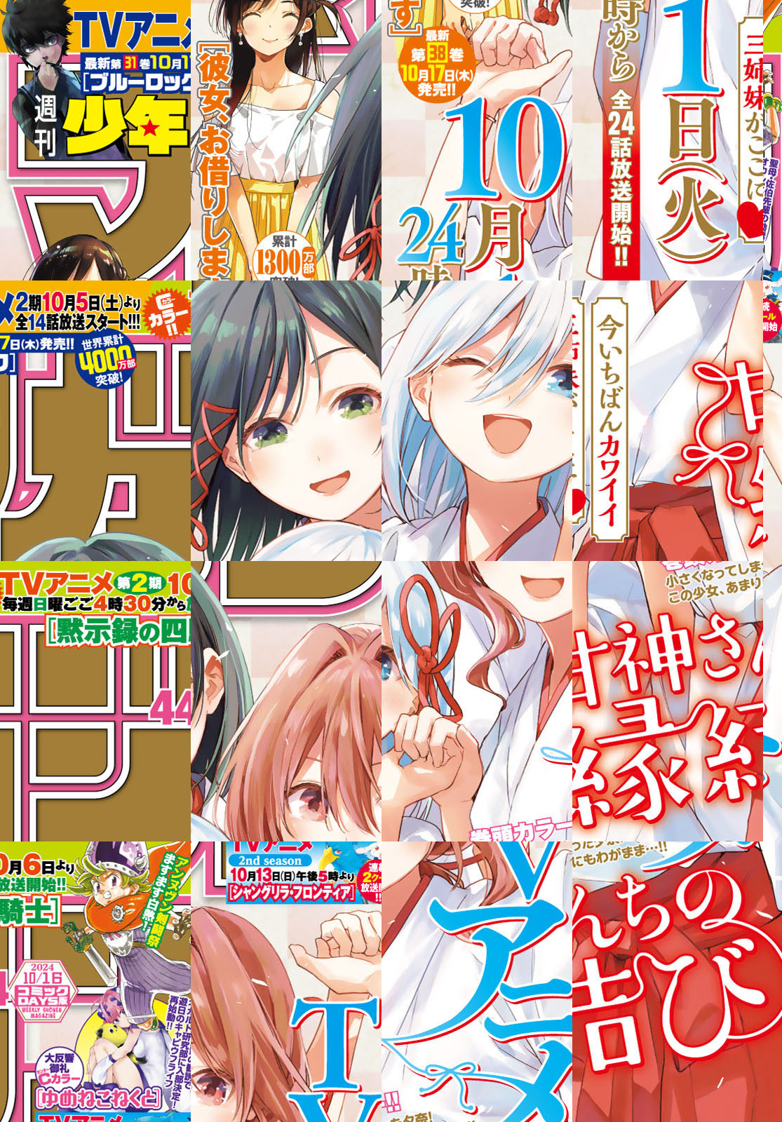 ※『巻頭グラビア』および一部の記事は収録されていません。紙版と一部内容が異なります。ご了承ください。 【表紙&巻頭カラー】[甘神さんちの縁結び]TVアニメ10月1日(火)24時から全24話放送開始!! 【Cカラー】[黙示録の四騎士]TVアニメ第2期 10月6日より毎週日曜ごご4時30分から放送開始!! 『FT』『ダイヤのA』の再掲載が読めるのは電子版だけ!