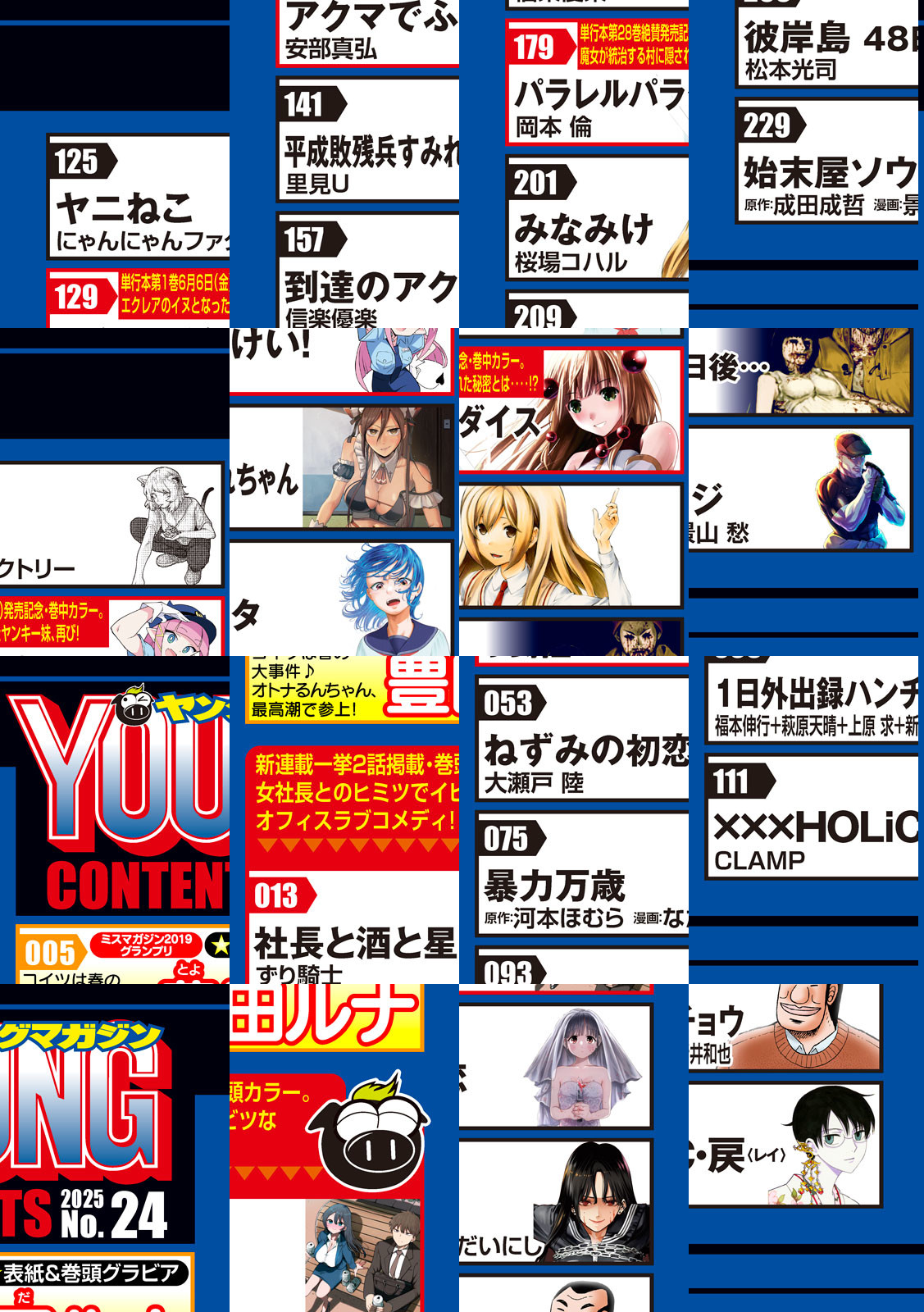〈巻頭カラー〉ずり騎士『社長と酒と星』 X(旧Twitter)フォロワー60万人超えの奇才が贈る新連載はKOWAI!? KAWAII!! 女社長とのヒミツでイビツなオフィスラブコメディ!! 一挙2話掲載!!〈巻中カラー〉上月亮・津覇圭一・草下シンヤ・神里純平『ゴールデンドロップ』連載2周年記念! 4号連続カラー第1弾! 極道・久貝との最終決戦編、突入!! 〈巻中カラー〉岡本倫『パラレルパラダイス』累計500万部突破&単行本発売記念!! センターカラー4p!! 異色SEXYファンタジー 魔女が統治するエトワ村に隠された秘密とは・・・・!? 最新第28巻5/7(水)発売!! 〈巻中カラー〉安部真弘『アクマでふけい!』 第1巻発売間近! 巻中カラー☆ エクレアのイヌとなったヤンキー妹、再び! 悪魔のしつけが始まる・・・・。山本崇一朗先生からの応援イラストも掲載!〈表紙&巻頭グラビア〉ミスマガジン2019グランプリ 豊田ルナ コイツは春の大事件♪ “オトナるんちゃん”、最高潮で参上!〈巻中グラビア〉溝端 葵 激推しニューカマー登場!! 今年イチの注目ガール、今から要Check☆〈巻末グラビア〉福田ひなた 初グラビア! 最高ボディ&最強スマイルを最速おとどけ!