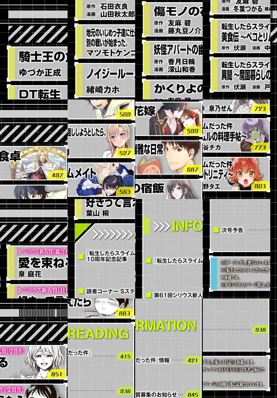 表紙は『夜桜四重奏』!大人気連載『デキる猫は今日も憂鬱』はセンターカラーで登場!劇場版第2弾&TVアニメ第4期制作決定の『転生したらスライムだった件』や、実写映画が大ヒット上映中の『はたらく細胞』スピンオフ『猫』『おくすり』、さらに圧倒的人気を誇る『タワーダンジョン』『バーサス』『戦車椅子-TANK CHAIR-』『ライドンキング』なども掲載!