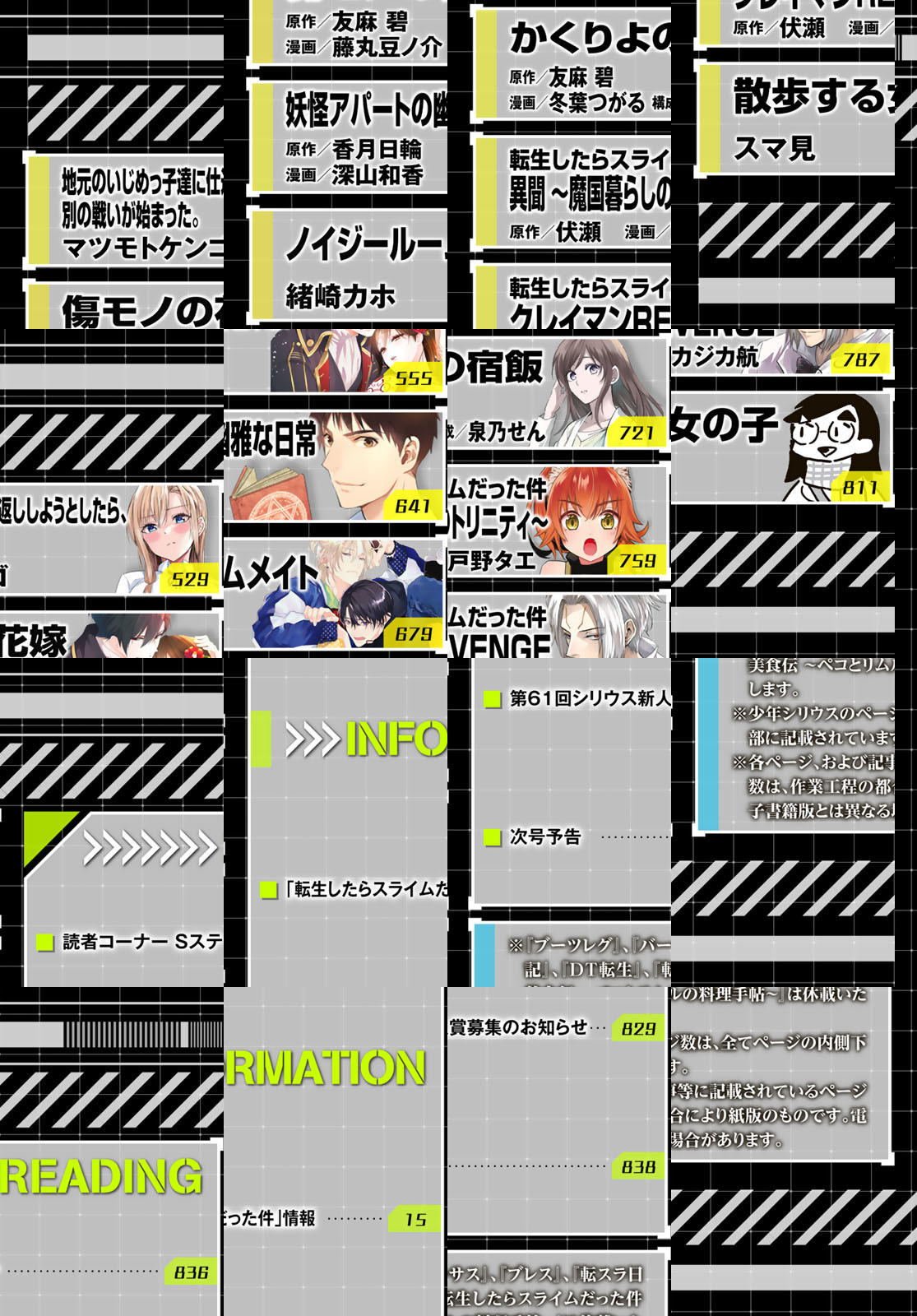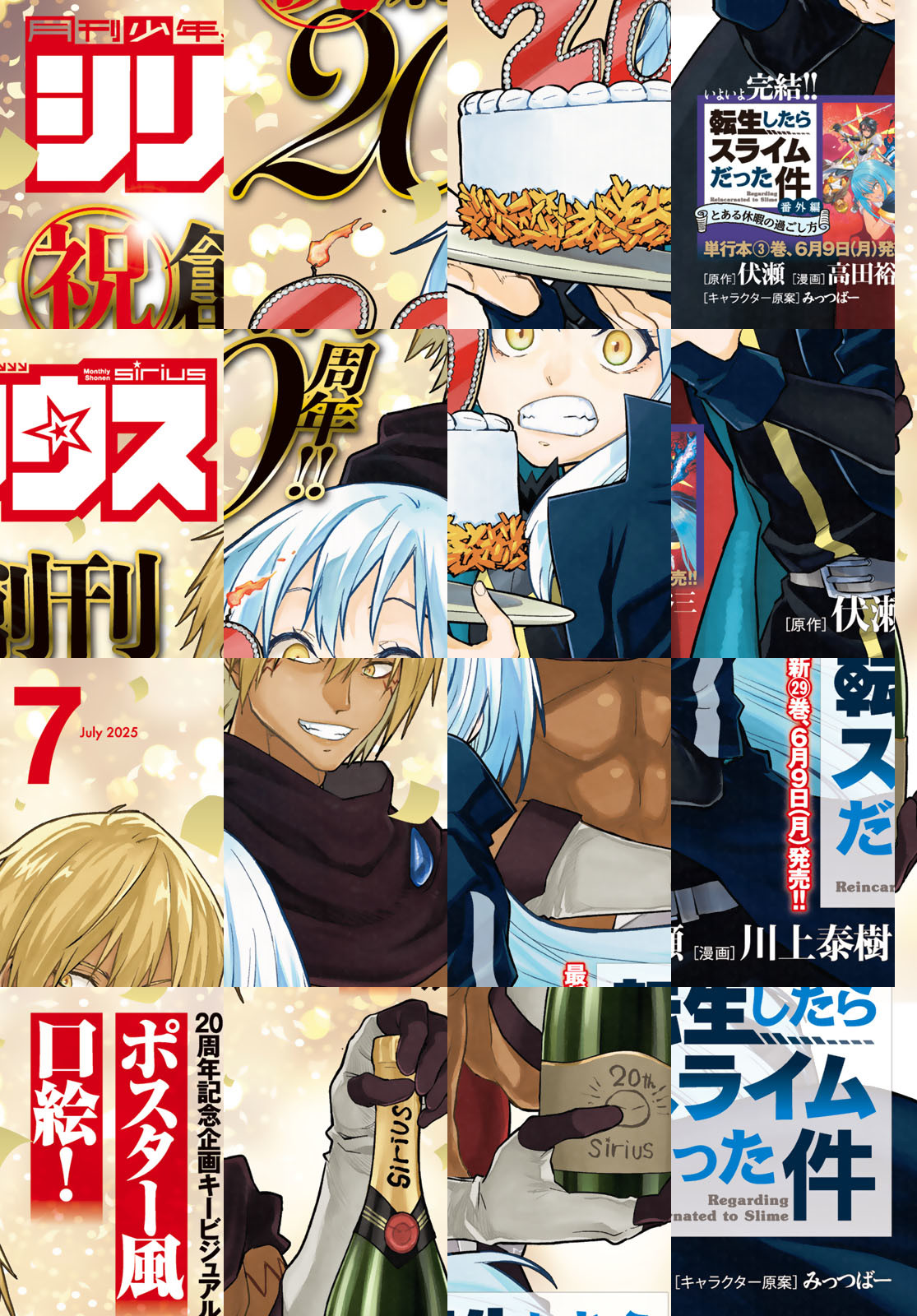 創刊20周年を迎えた7月号の表紙は『転生したらスライムだった件』!高田裕三先生が描くスピンオフ『転生したらスライムだった件 番外編 ~とある休暇の過ごし方~』が最終回! 『夜桜四重奏』は大ボリュームの75ページでお届けします!その他『はたらく細胞』スピンオフ『猫』『おくすり』、さらに圧倒的人気を誇る『デキる猫は今日も憂鬱』『ライドンキング』『タワーダンジョン』『戦車椅子-TANK CHAIR-』なども掲載!