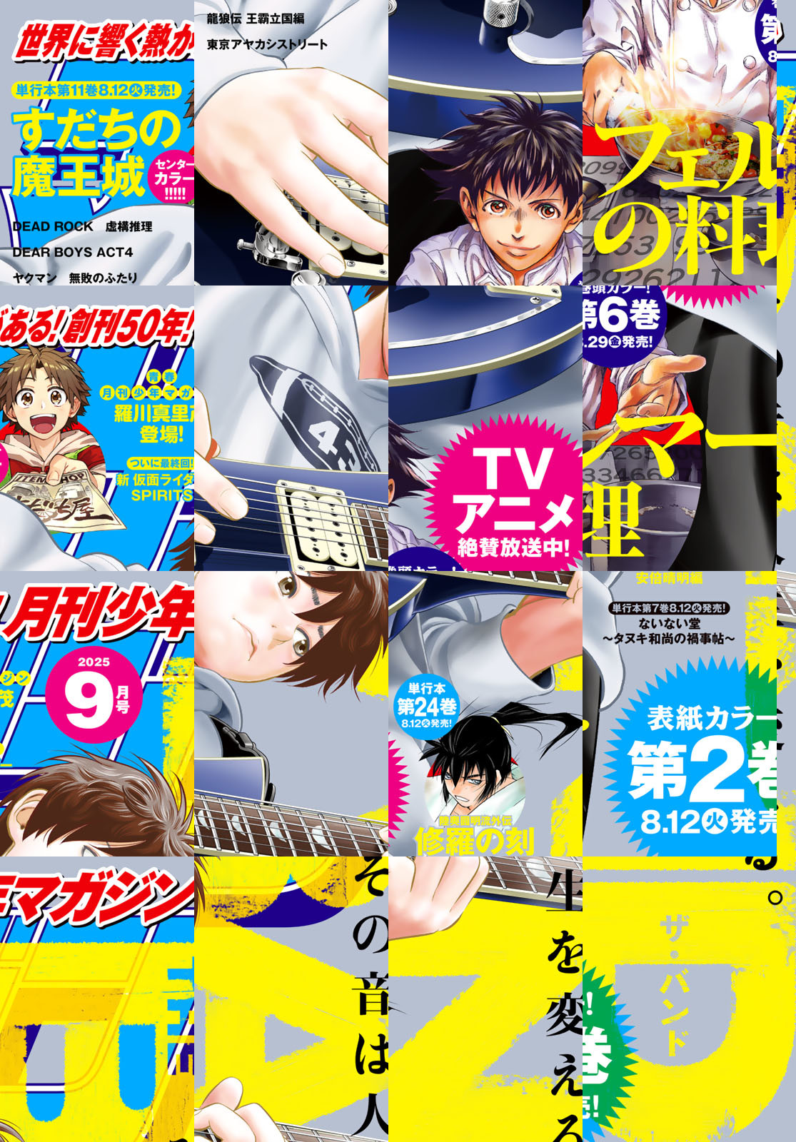 世界に響く熱がある!! 創刊50周年! 『月刊少年マガジン』2025年9月号!! ☆表紙カラー、『THE BAND』!! その音は人生を変える。ハロルド作石の贈る新・本格バンド漫画!! 単行本最新第2巻、8月12日(火)発売!! ☆巻頭カラー、料理×数学!!『フェルマーの料理』!! TVアニメ絶賛放送中!! 単行本最新6巻8月29日(金)発売!! ☆センターカラー、新章突入!! 『すだちの魔王城』!! 単行本最新11巻8月12日(火)発売!! ☆創刊50周年記念読み切り『青春月刊少年マガジン』、今号は、『ましろのおと』の羅川真里茂登場!! 読むと心に音が鳴る月マガ2025年9月号!!