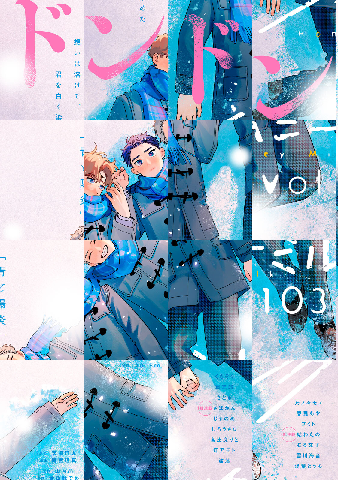★人気急上昇!「青と陽炎」雪に想いが溶けて君を白く染める。表紙&巻頭で登場!! ★新連載 忘れられなかった同級生との再会ーー。にがくて甘い、大人の初恋やり直しLOVE! 「初恋に眩んで」さばかん 教育実習生×年上教師、運命の再会。焦がれるほどに惹かれ合う2人のときめく日々。 「はるかぜの鼓動」結わたの ★超豪華19本! ついに堂々完結!!「残像スローモーション」、感動の最終回!!「イケオジモンスターと絶対零度男子」&「僕らがキスをする理由」&「ぼくらのレトロカフェ日記」も最後まで目が離せない!!! <vol.103 掲載ラインナップ> 【表紙】「青と陽炎」第13話 ドンドン 【新連載!】「初恋に眩んで」第1話 さばかん 【新連載!】「はるかぜの鼓動」第1話 結わたの 【完結!】「残像スローモーション」第18話 じゃのめ 【完結!】「イケオジモンスターと絶対零度男子」第24話 フミト 【完結!】「僕らがキスをする理由」第13話 波藻 【完結!】「ぼくらのレトロカフェ日記」第4話 湯葉とうふ 「Dr.系男子の恋愛カルテ 偏愛編」第4話 高比良りと 「溺愛執着αくん」第15話 むろ文子 「迷子の子猫にくちづけを」第3話 春兎あや 「君の瞳に堕ちる夜」第3話 乃ノ々モノ 「俺が好きって言ったらどうする?」第16話 くもそく 「猫になりたい田万川くん またたび」第4話 灯乃モト 「俺が伏見にときめいてるわけがない」第4話 雪川海音 「君は僕の理想の彼氏」第7話 しろうさな 「来年のことを言え、俺が笑う」第13話 原作:山内晶 漫画:金魚鉢でめ 企画:AOI Pro. 「僕は何度でも君に恋をする」第7話 軍三郎 「和田兄弟の諸事情」第11話 さとる 「ギフテッド」第18話 原作:天樹征丸 漫画:雨宮理真 ★★ハニーミルクは毎月10日配信★★
