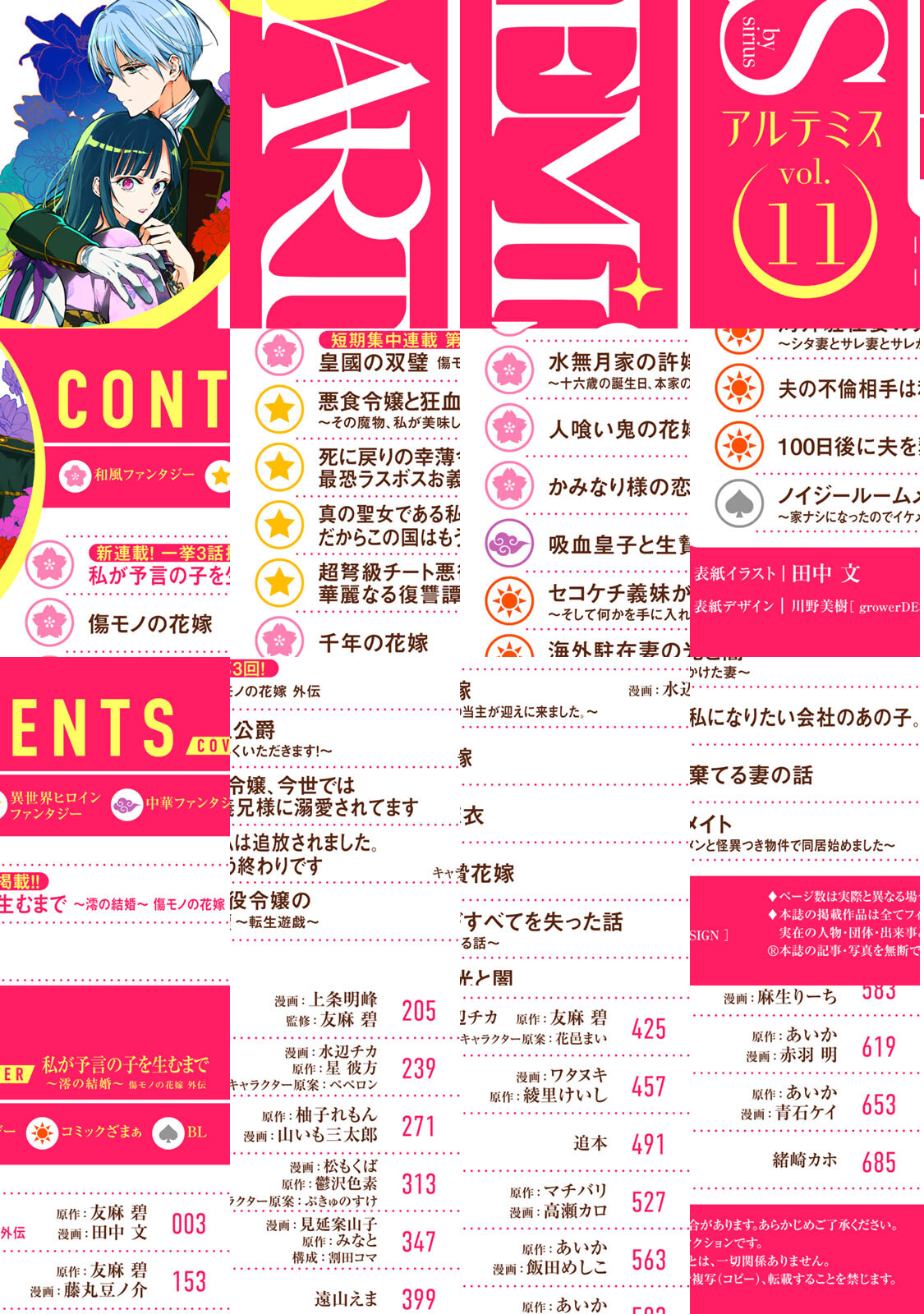 Vol.11の表紙&巻頭は『傷モノの花嫁』公式スピンオフ第2弾の『私が予言の子を生むまで ~澪の結婚~ 傷モノの花嫁 外伝』! 一挙3話掲載で開幕! 大人気『死に戻りの幸薄令嬢、今世では最恐ラスボスお義兄様に溺愛されてます』『悪食令嬢と狂血公爵』『千年の花嫁』の他、『セコケチ義妹がすべてを失った話』などのざまぁシリーズも掲載!