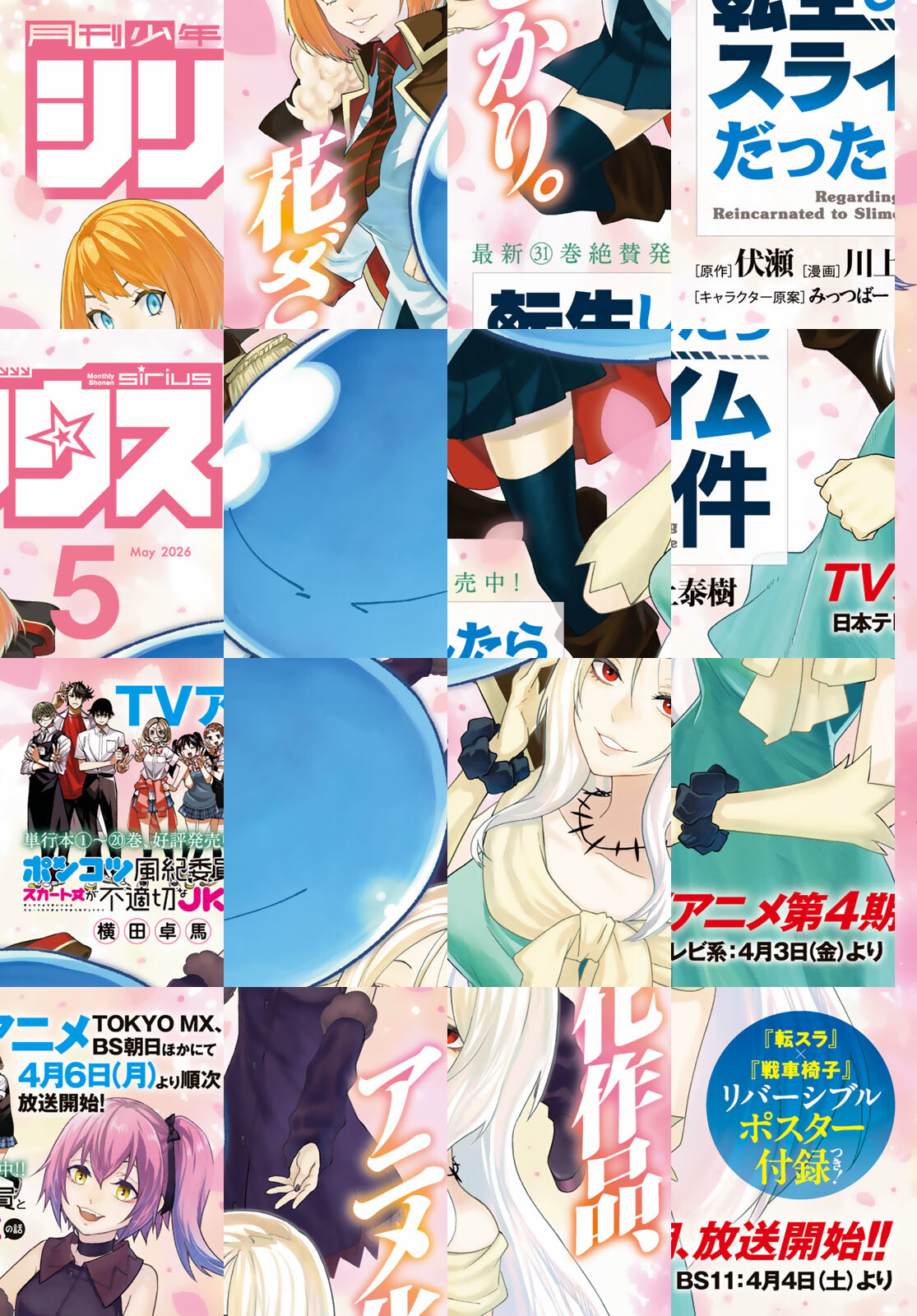 表紙は劇場版第2弾が大ヒット上映中の『転生したらスライムだった件』! TVアニメ第4期も4月から放送開始なので是非チェックを! 同じく4月からTVアニメ放送の『ポンコツ風紀委員とスカート丈が不適切なJKの話』や『ブレス』などのアニメ情報が盛りだくさん! さらに大人気の『ブーツレグ』『デキる猫は今日も憂鬱』『タワーダンジョン』『バーサス』『戦車椅子-TANK CHAIR-』も掲載!