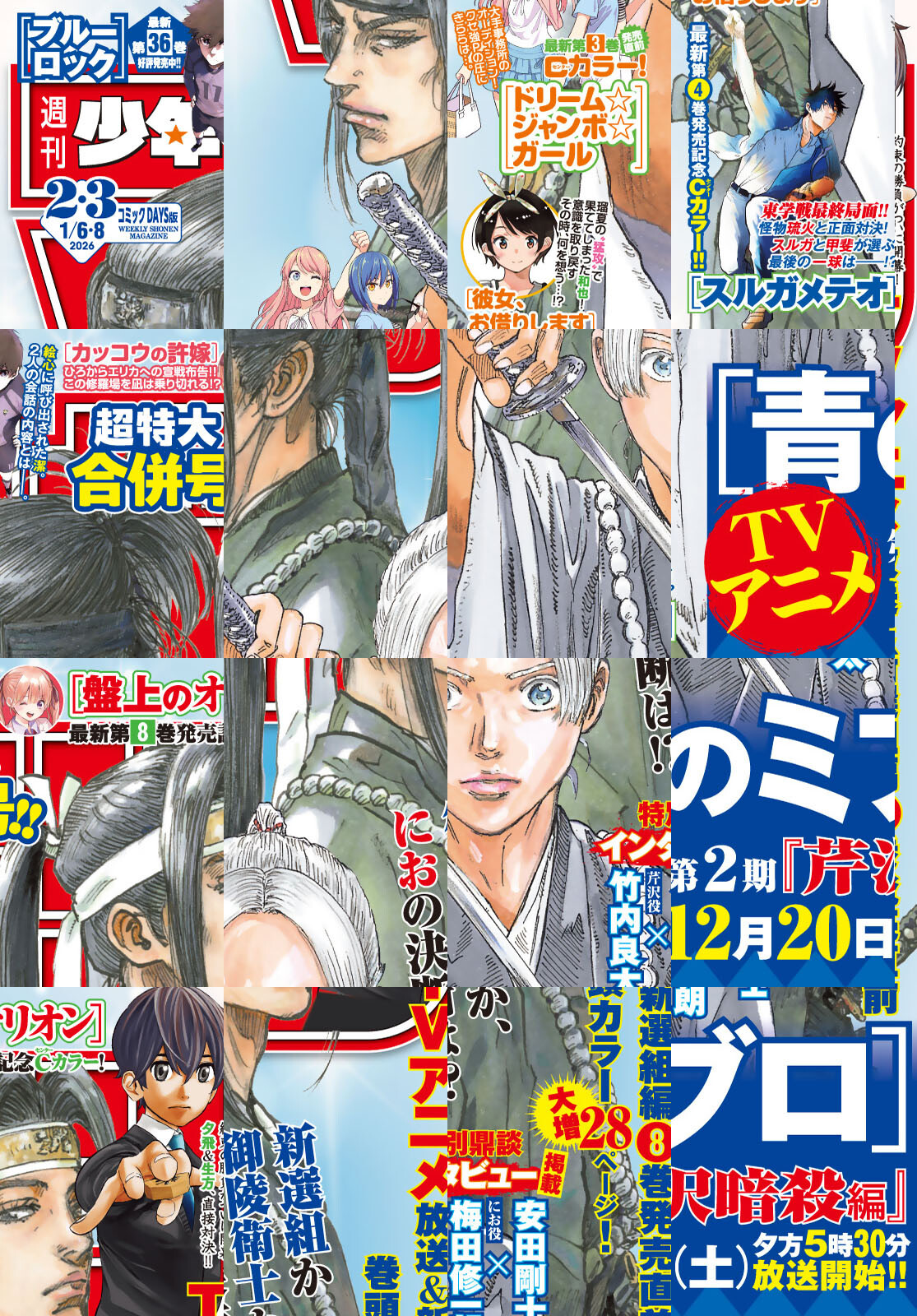 ※『巻頭グラビア』および一部の記事は収録されていません。紙版と一部内容が異なります。ご了承ください。 【巻頭カラー】[青のミブロ]TVアニメ放送直前!安田剛士×にお役・梅田修一朗×芹沢役・竹内良太特別鼎談インタビュー掲載! 【Cカラー】[盤上のオリオン]約束の勝負がついに開幕!夕飛&生方、直接対決!!