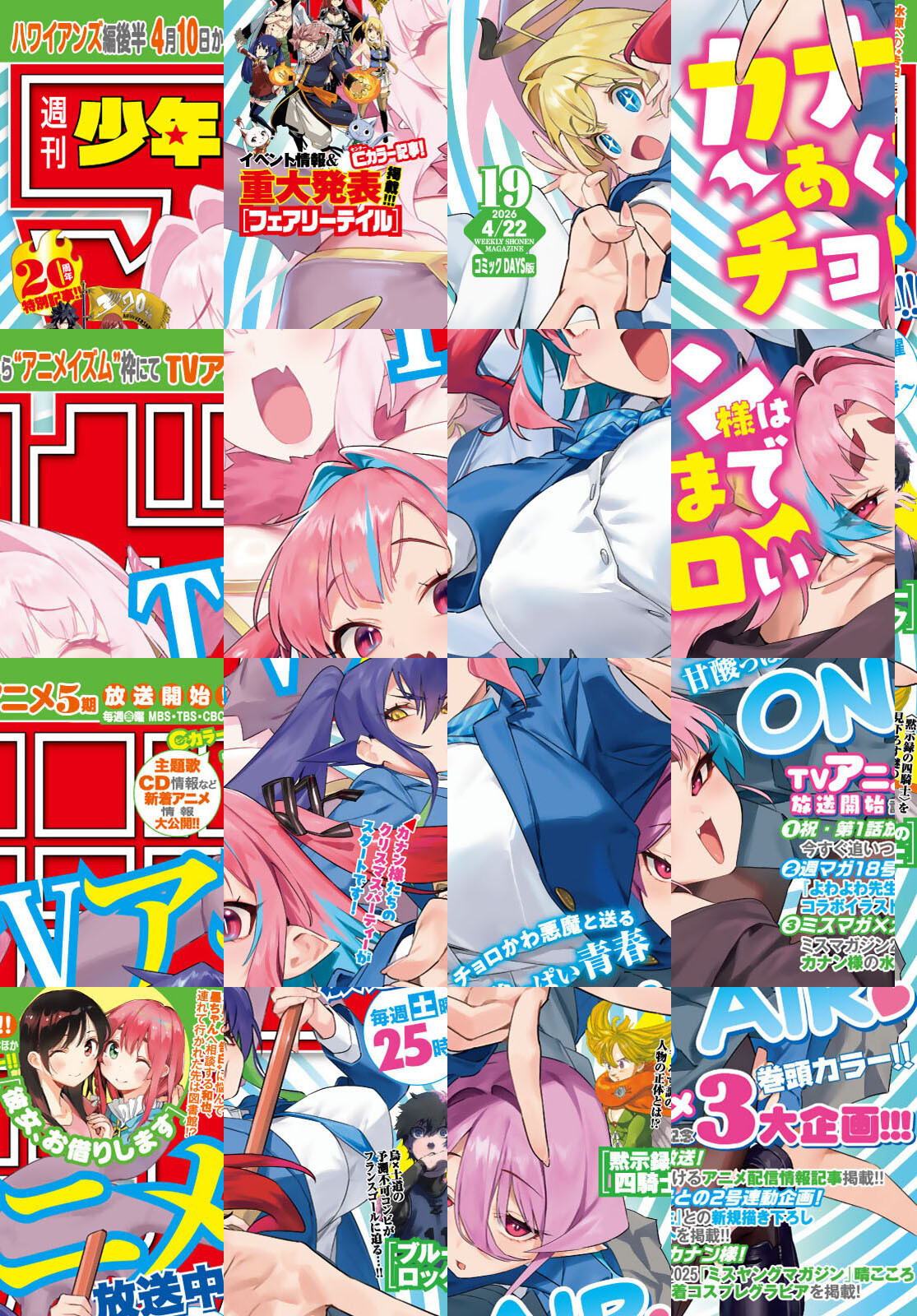 ※『巻頭グラビア』および一部の記事は収録されていません。「週刊少年マガジン」電子版は紙版と一部内容が異なる場合がございます。ご了承ください。 【巻頭カラー】 TVアニメ毎週土曜25時~放送中!![カナン様はあくまでチョロい] 【Cカラー】ハワイアンズ編 後半 4月10日~TVアニメ5期放送開始!!