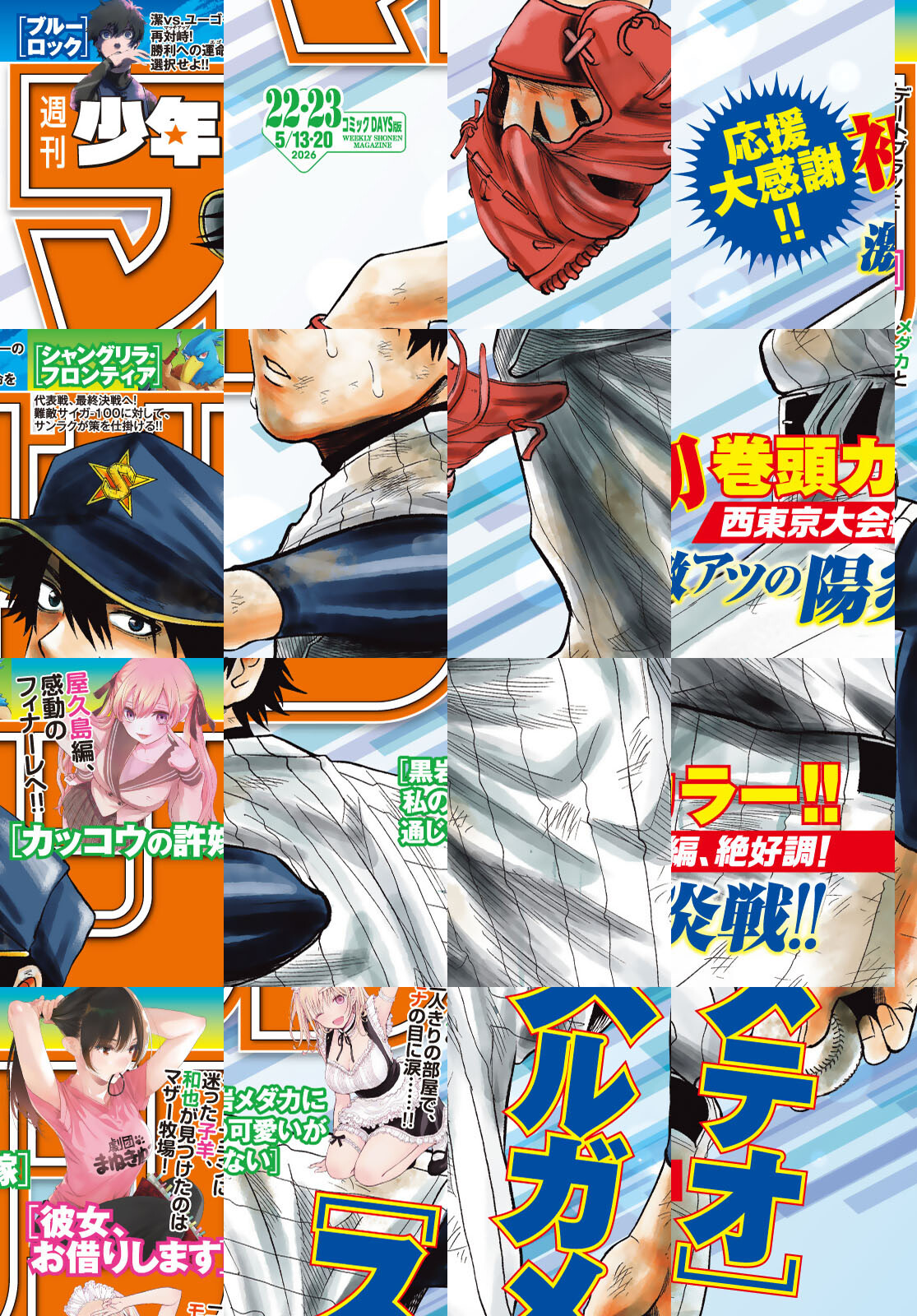 ※『巻頭グラビア』および一部の記事は収録されていません。紙版と一部内容が異なります。ご了承ください。 【巻頭カラー】[スルガメテオ]応援大感謝!西東京大会編、絶好調!激アツの陽炎戦!! 【絶好調!】[ブルーロック]潔vs.ユーゴーの再対峙!勝利への運命を選択せよ!!