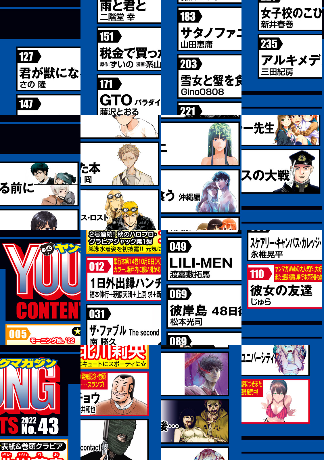 【巻頭カラー】『1日外出録ハンチョウ』漫画賞を目指す、瀬戸内に襲い掛かる‥‥スランプ‥‥! 編集 大槻は瀬戸内の調子を取り戻させることができるのかっ‥‥!【巻中カラー】『彼女の友達』ヤンマガWebの大人気作、大好評につきまたまた出張! 【表紙&巻頭グラビア】2号連続! “秋のハロプロジャック”グラビアSP第1弾!「モーニング娘。’22 北川莉央」競泳水着姿を初披露!! 元気にキュートにスポーティーに☆ 【巻末グラビア】『BEYOOOOONDS 山﨑夢羽&Juice=Juice 工藤由愛』写真集も注目の2人が初共演! 仲良すぎな最上級癒されグラビアを展開!!