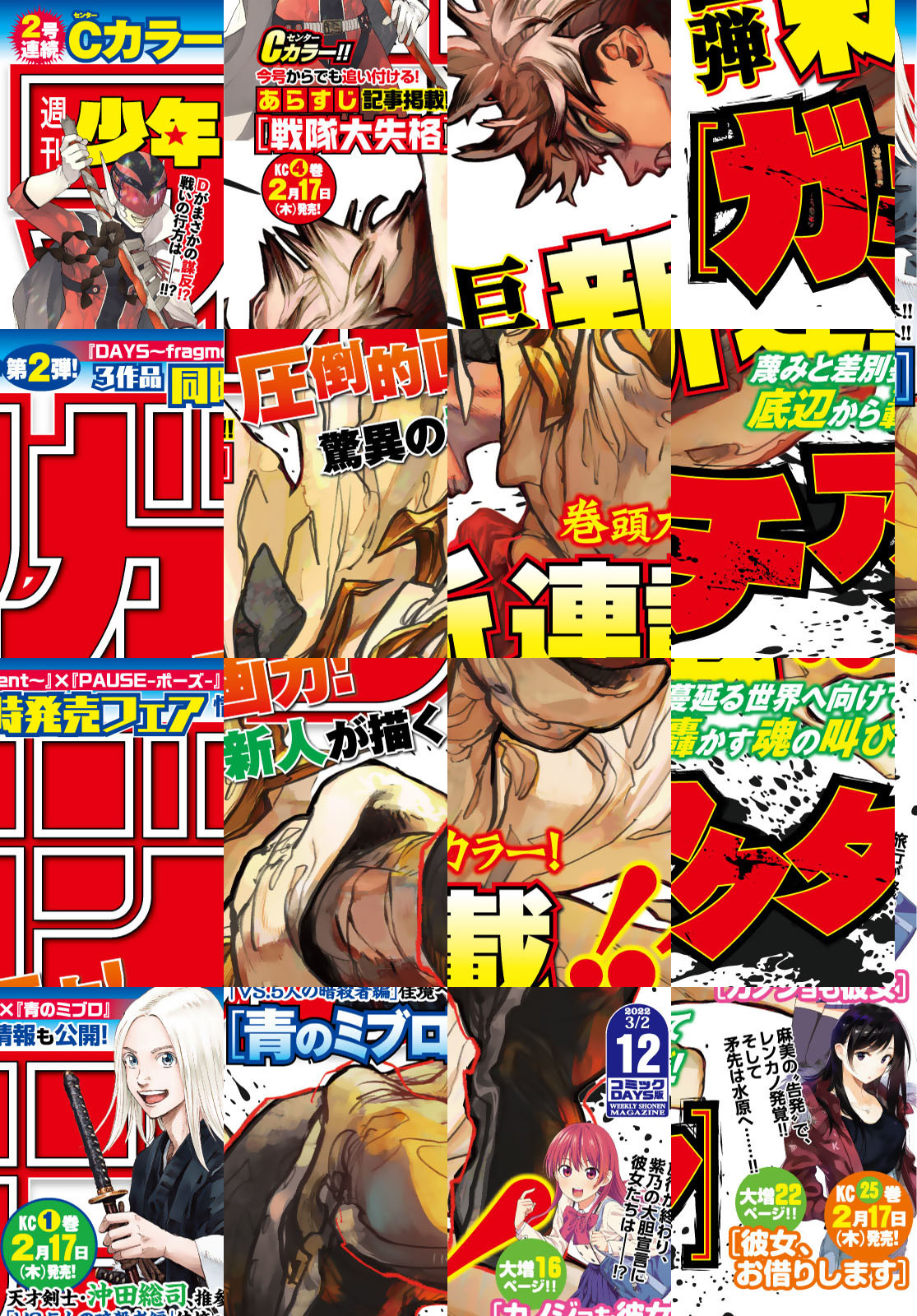 ※『巻頭グラビア』および一部の記事は収録されていません。「週刊少年マガジン」電子版は紙版と一部内容が異なる場合がございます。ご了承ください。 【新連載】驚異の新人・裏那圭が圧倒的画力で描く巨弾ファンタジー!![ガチアクタ] 【Cカラー】天才剣士・沖田総司、推参!! 「VS.5人の暗殺者編」佳境へ!![青のミブロ] 『FAIRYTAIL』『ダイヤのA』(第1部)が再連載掲載中!