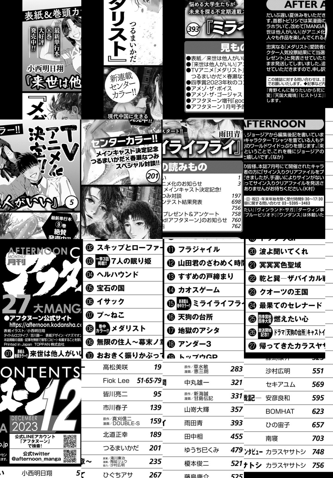 アフタヌーン12月号、表紙&巻頭カラーは小西明日翔『来世は他人がいい』! 今号重大発表アリ!新刊8巻10月23日発売! 巻中カラーはTVアニメ『メダリスト』メインキャスト発表記念!作者つるまいかだ×主演声優対談!新刊9巻10月23日発売! もう一つ巻中カラーは不定期新連載開幕!雨田青『ミライライフライ』!中国最難関大学が舞台の現代中国青春群像劇! BSーTBSでドラマ大好評OA中の田中相『天狗の台所』、舞台は京都へ! 今号も話題特盛り!
