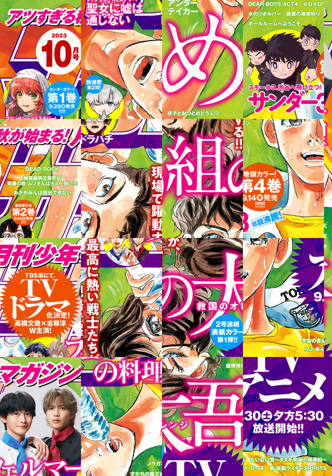 アツすぎる秋が始まる!!『月マガ』2023年10月号9月6日発売!! ☆テレビアニメ9月30日(土)夕方5時30分放送開始!! 2号連続表紙カラー第1弾!! 最高に熱い戦士たちが、現場で躍動する!! 『め組の大吾 救国のオレンジ』!! ☆話題沸騰! 巻頭カラー!! 第4巻9/14(木)発売!! スモール3、渋谷へ飛び立つ!! 『サンダー3』!! ☆センターカラー! ファンタジー×ミステリー!! 第1巻9/25(月)発売!! 『聖女に嘘は通じない』!! ☆ドラマ化決定! 『フェルマーの料理』!! ☆新連載第2回! 『アンダーテイカー』!!闘う葬儀屋! ダークファンタジー!!『アンダーテイカー』!! 百花繚乱の連載陣!! 月マガ10月号!!